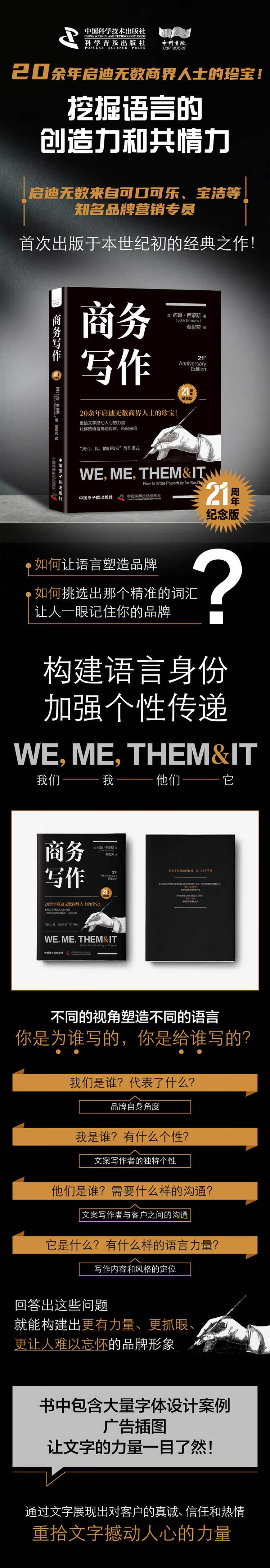 从将你的公司与其他公司区分开来,到为你的产品和服务注入生命力,再到撰写日常电子邮件,这本由现代商业写作大师撰写的图书展示了我们如何通过“语调”使用文字来获得商业活动中的竞争优势。