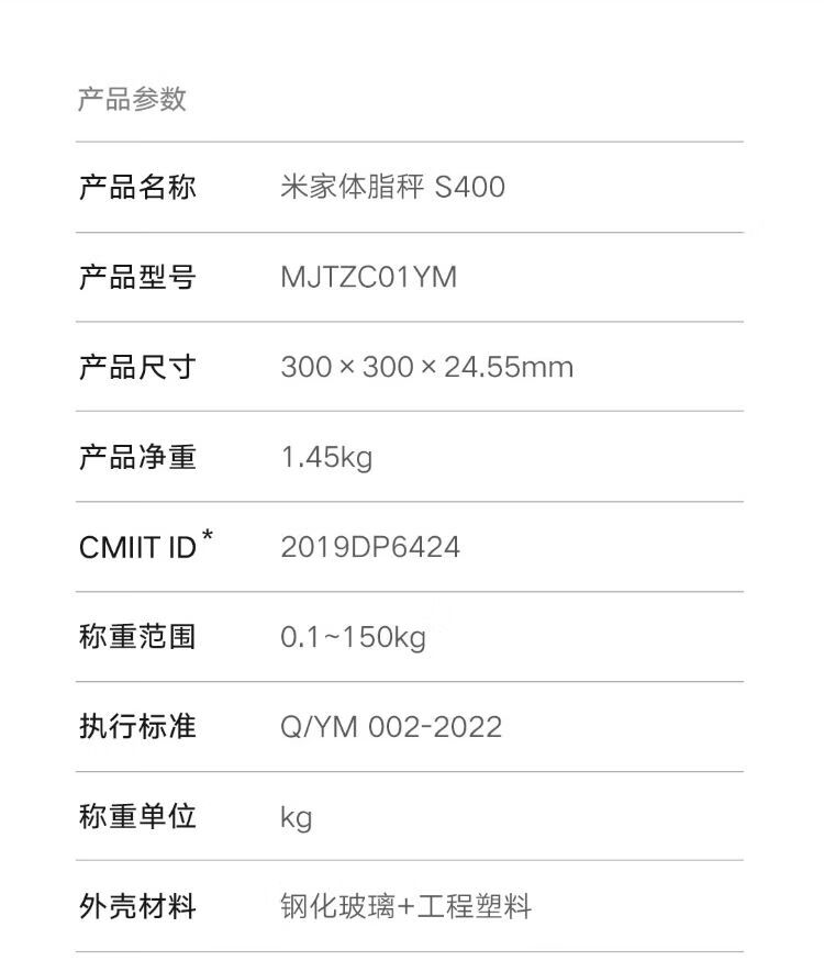 米家体脂秤S400 白色