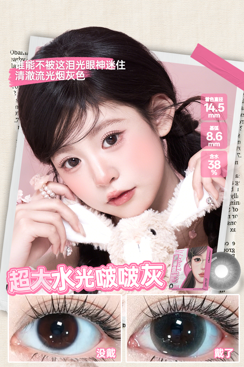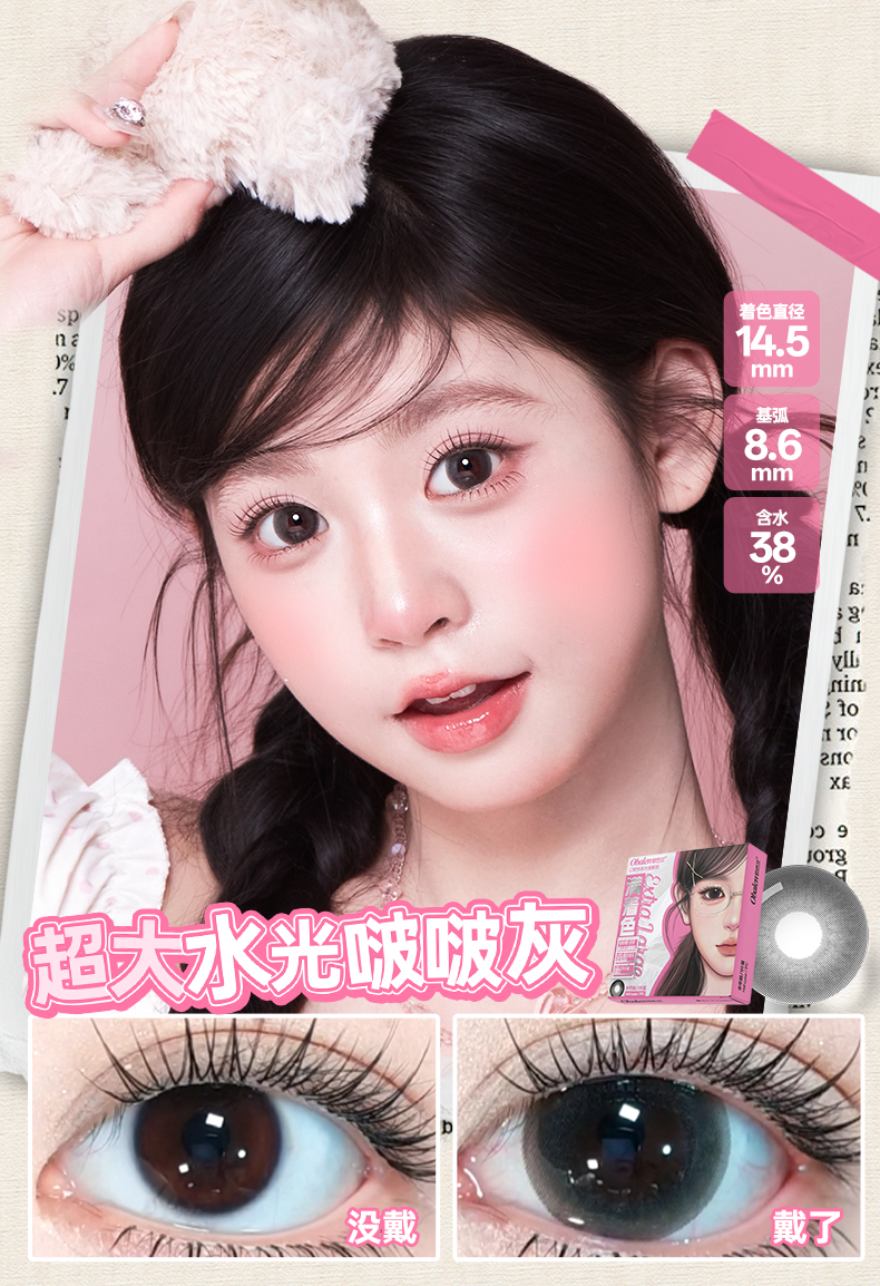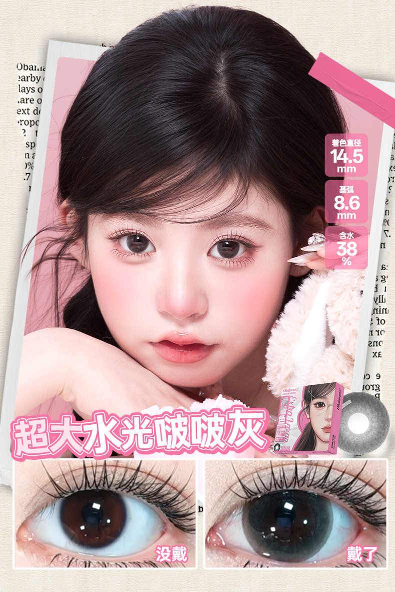 新款满着色系列【超大水光啵啵灰】14.5大直径半年抛美瞳1片装