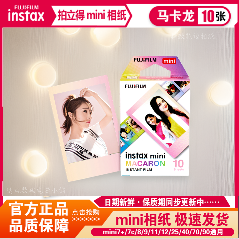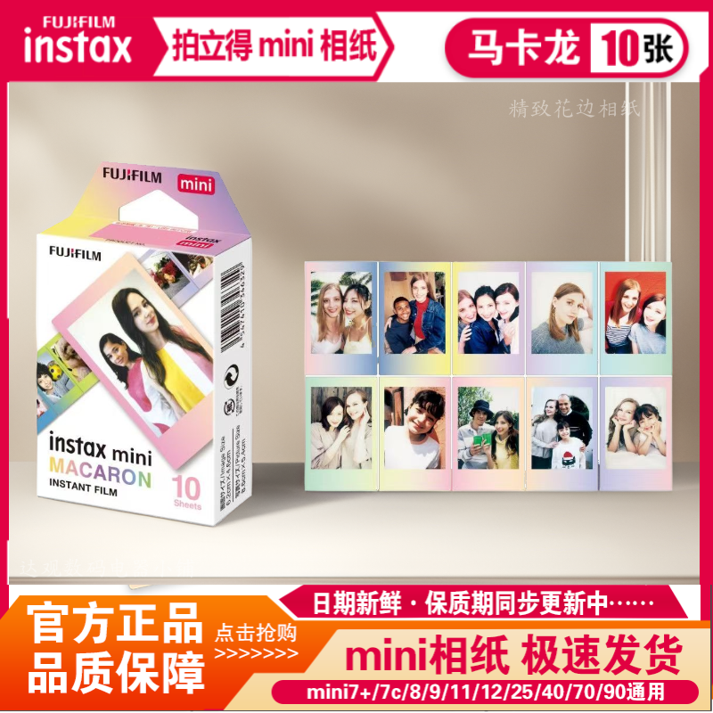 mini马卡龙3寸相纸1盒10张,多盒便宜富士拍立得花边相纸日期新鲜现货速发