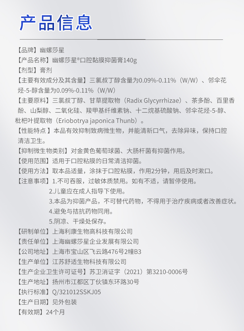幽螺莎星口腔抑菌牙膏140g/支*2支