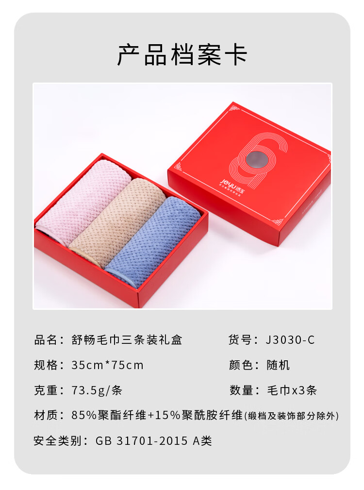 洁玉 舒畅毛巾三条装(GJ) 颜色随机