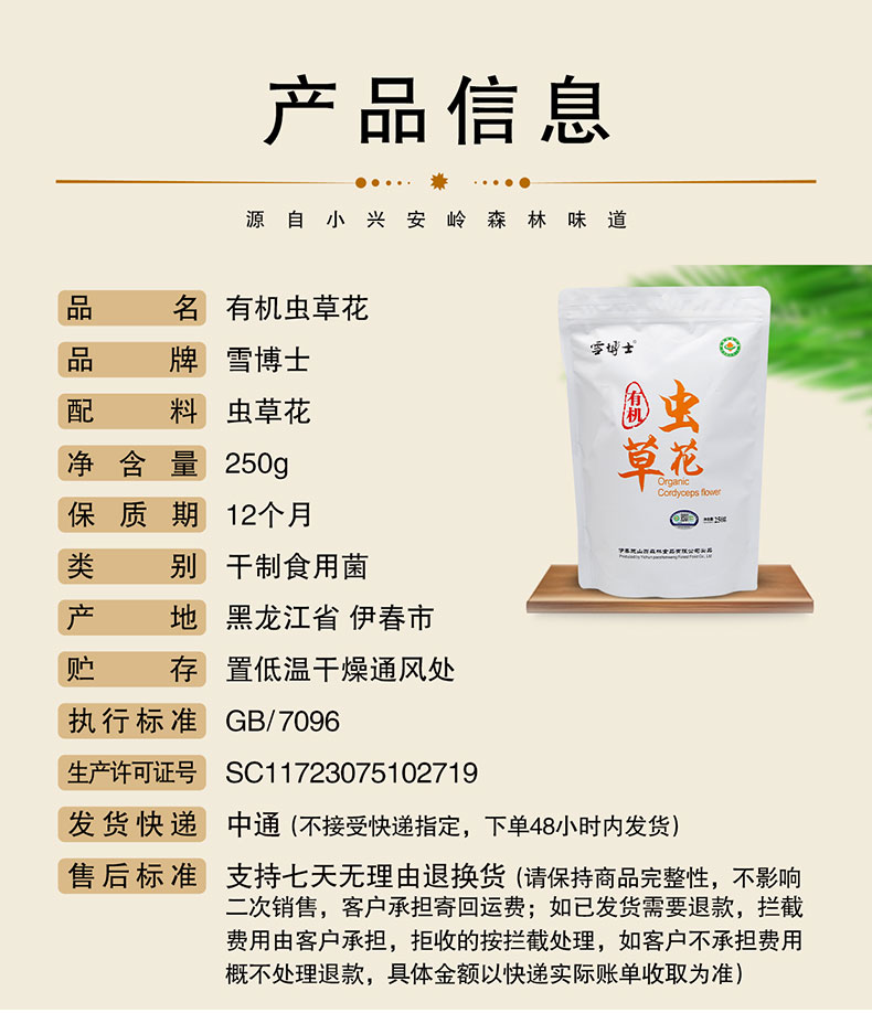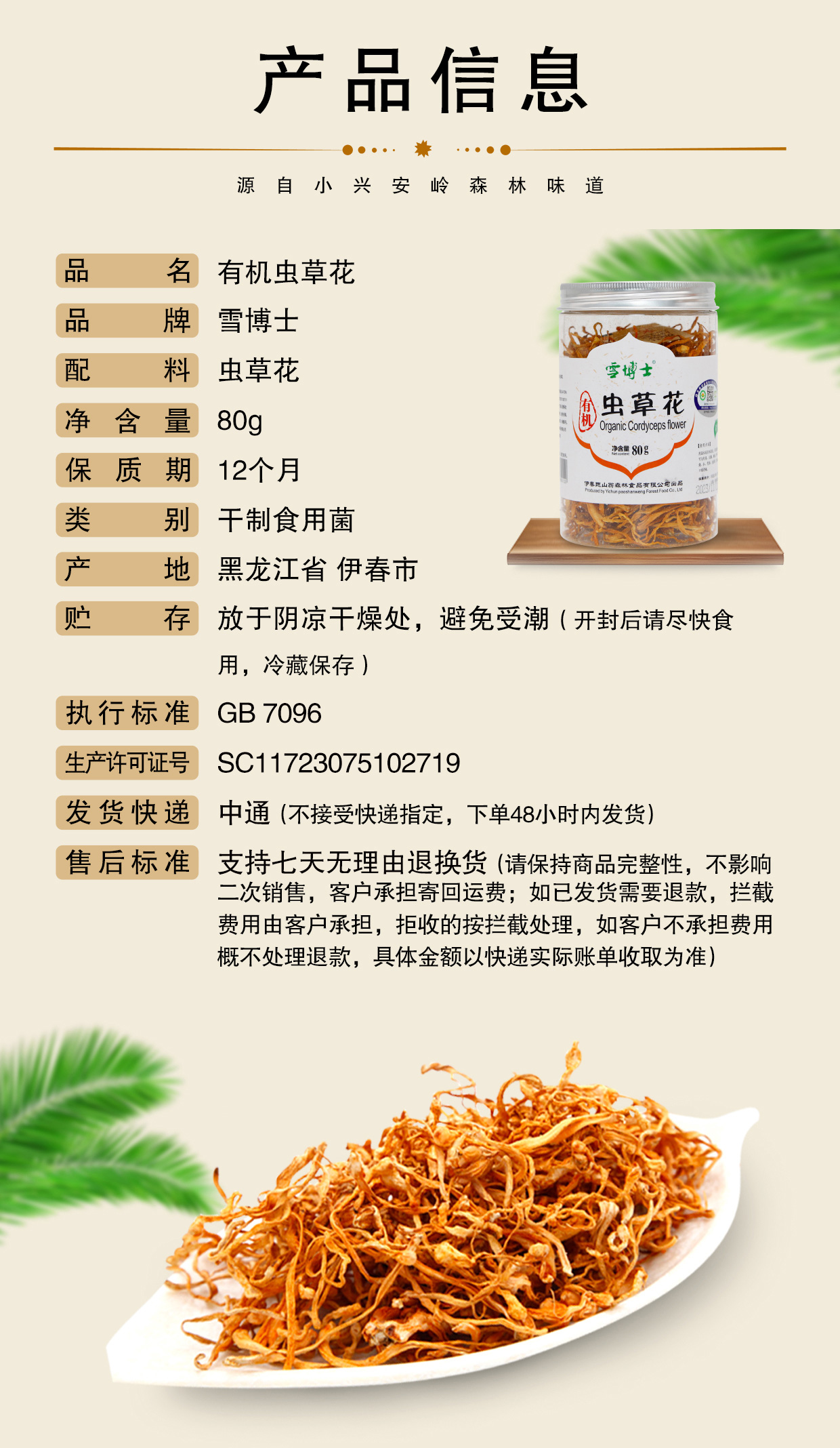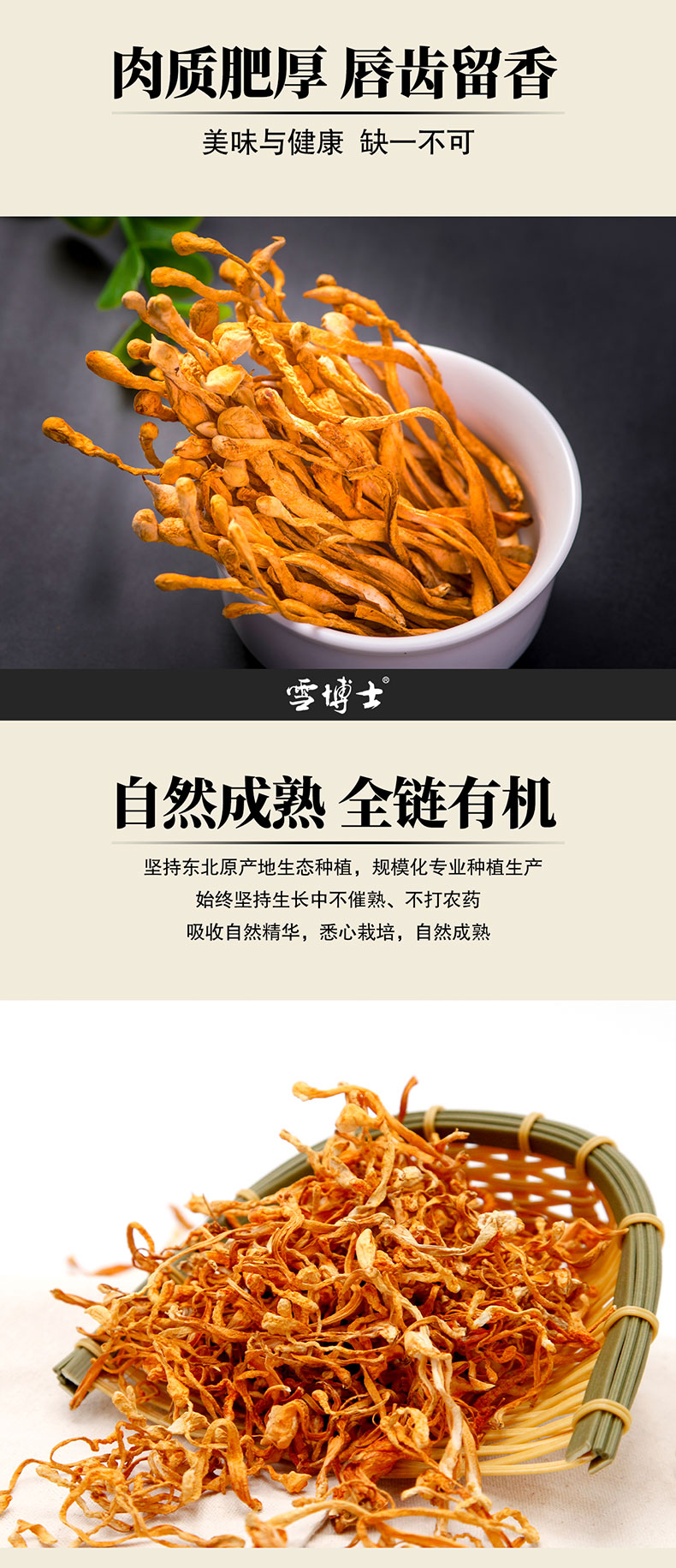 【厂商直发】有机虫草花东北特产煲汤火锅菌菇干货孢子不熏硫包邮