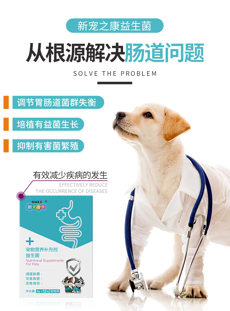 新宠之康 犬猫通用益生菌宠物兽用肠胃宝粉腹泻拉肚子呕吐营养补充剂5g