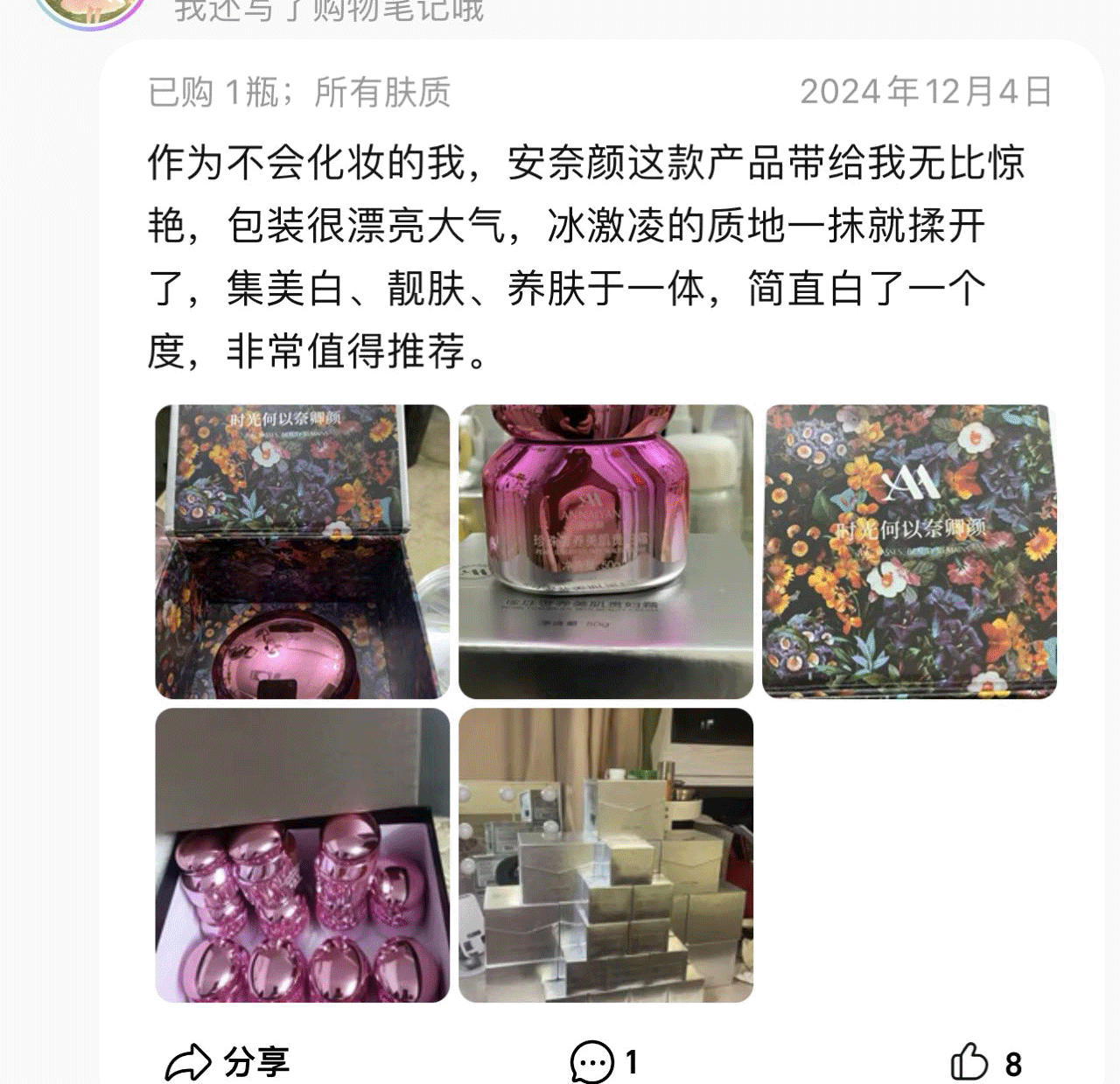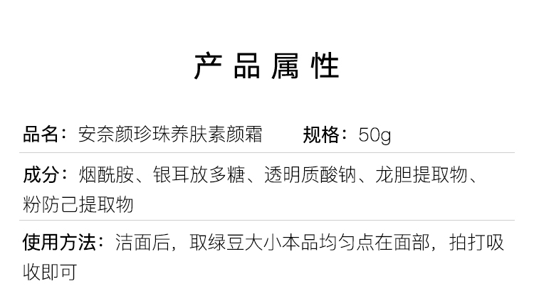 安奈颜主打的就是养肤,不仅添加了多种植物成分,还加入了天然珍珠粉、透明质酸钠、烟酰胺能亮白、嫩肤的成分。