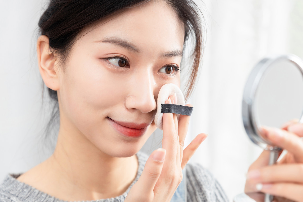 而且凑近看也没有粉质感,也不用担心会蹭到衣服领子上。