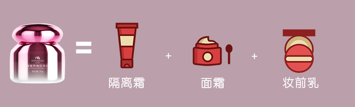 一瓶=妆前乳+底妆+亮白保湿面霜。