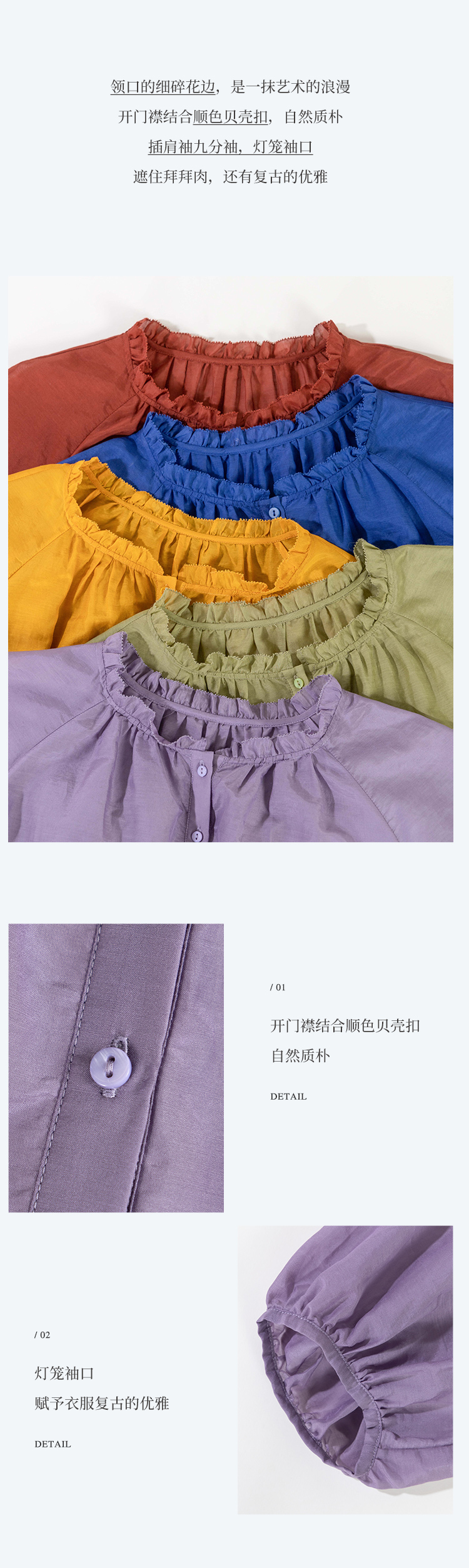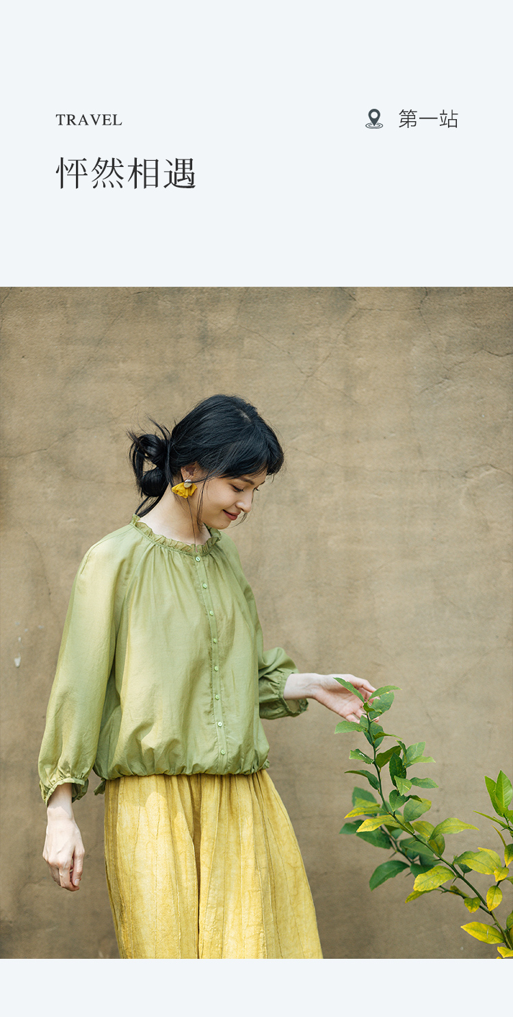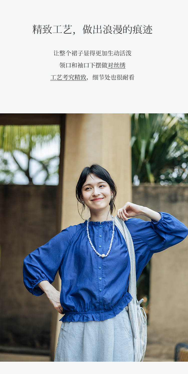 绽放旅行女装329朵/真丝衬衫对丝绣立领灯笼袖复古优雅小衫