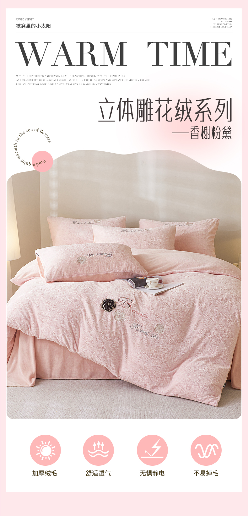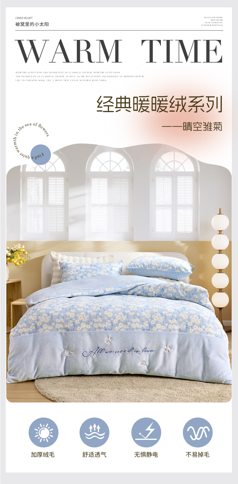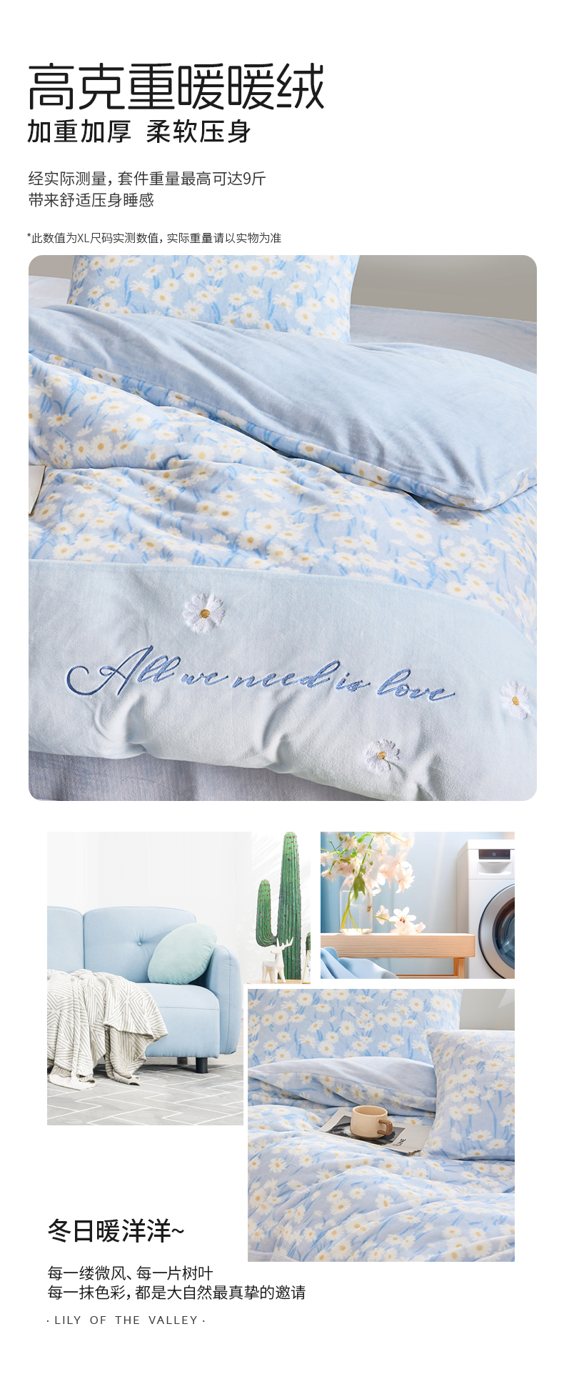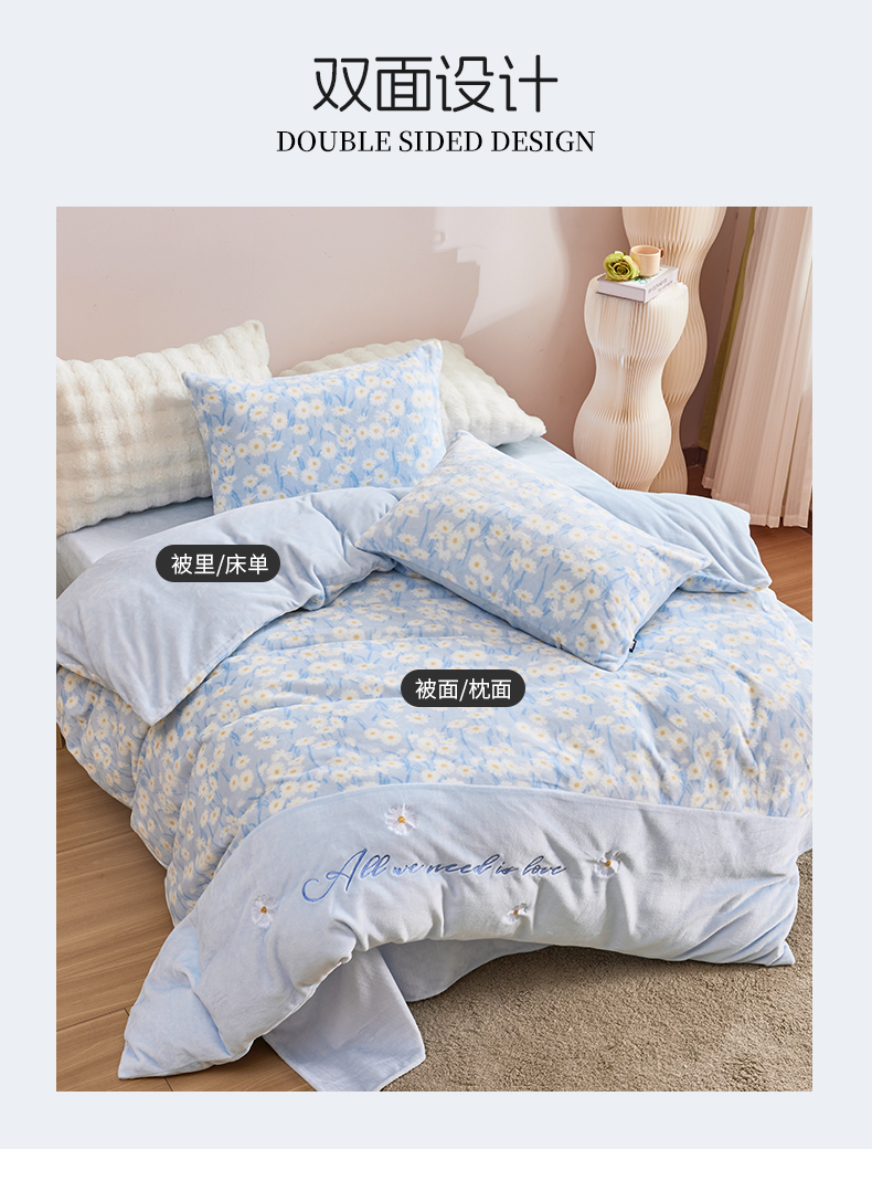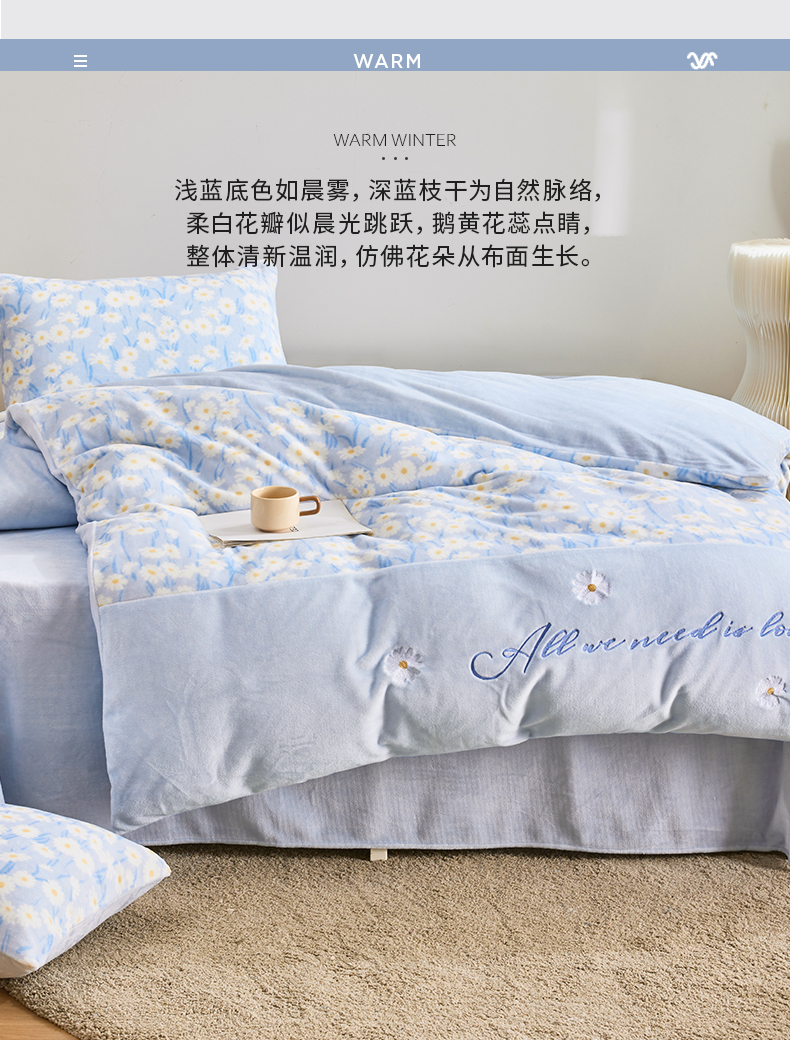 多喜爱 203*229CM绒套件 【不起球不掉毛】【冬季必备】【多款式可选】巴黎午后蓝/卡其