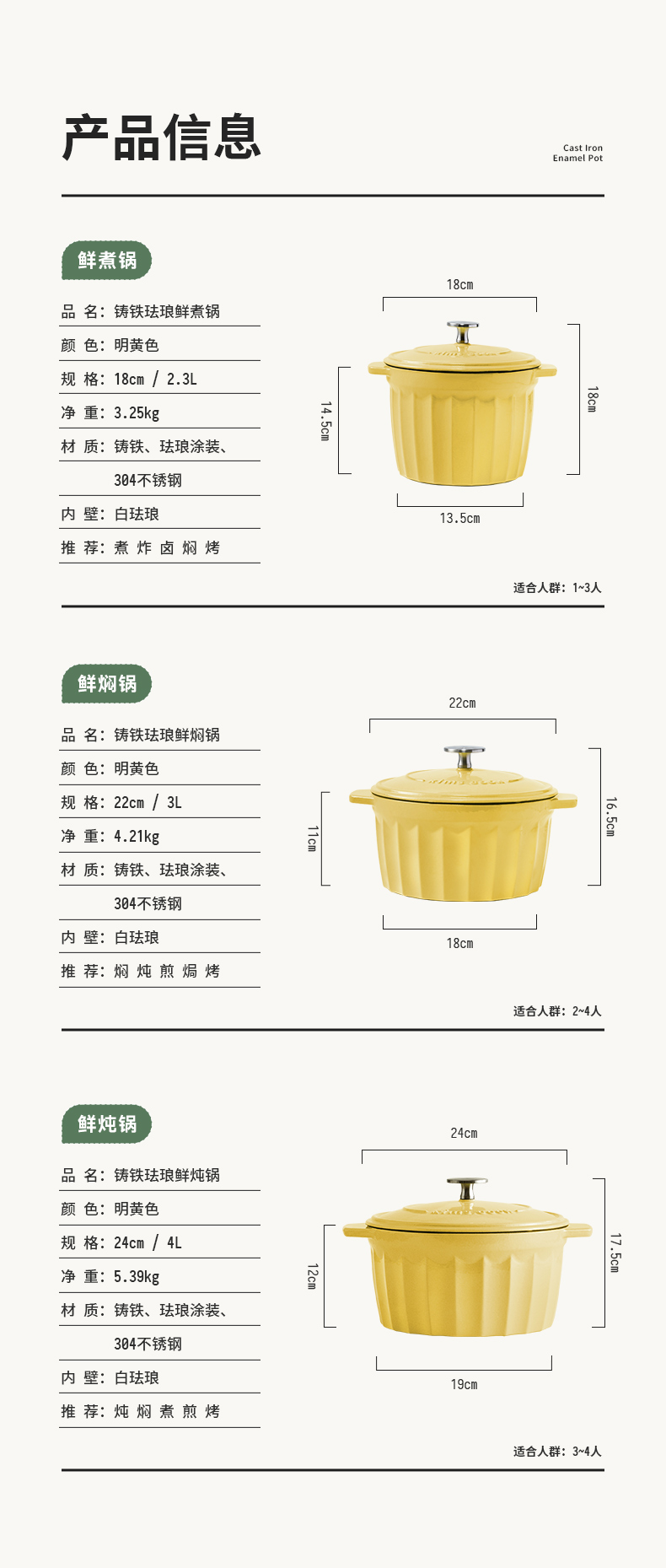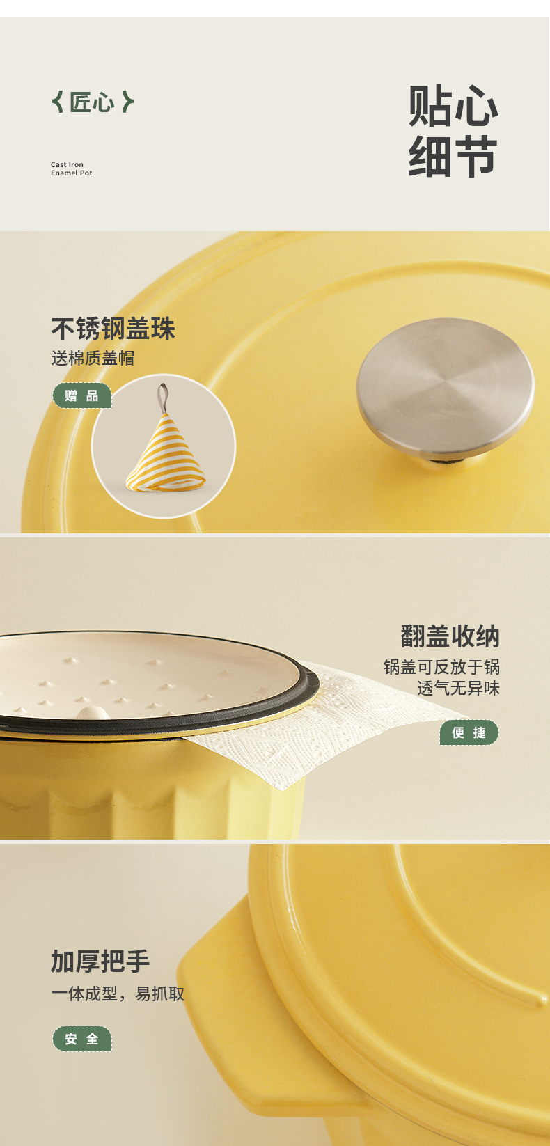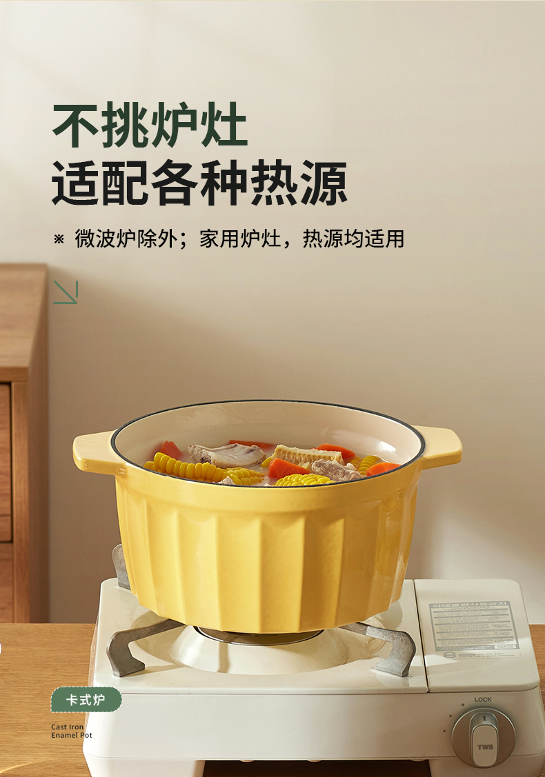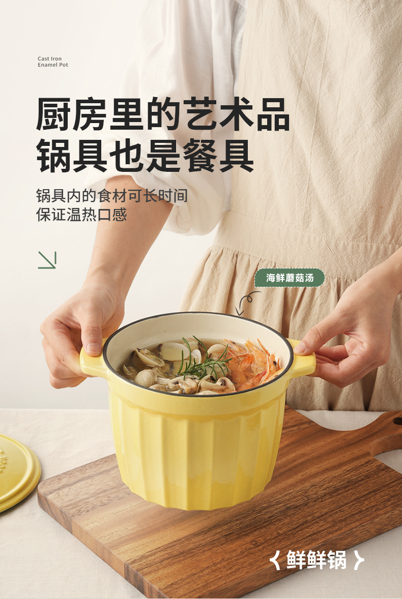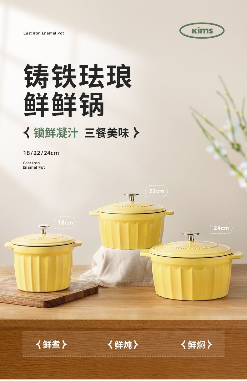 kimscook黄珐琅锅铸铁锅家用燃气砂锅炖汤锅搪瓷煲汤锅电磁炉煮锅