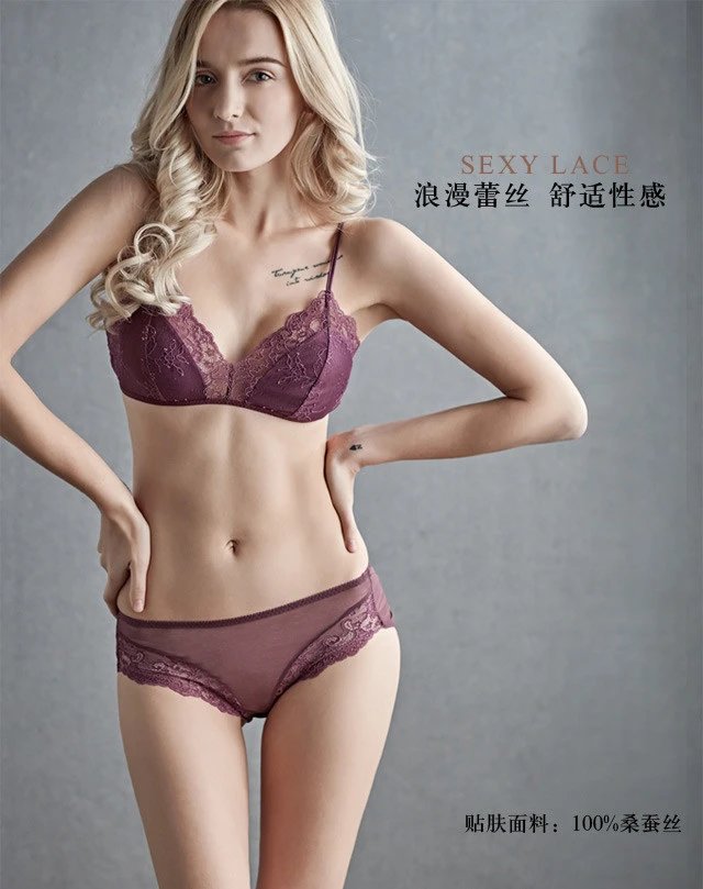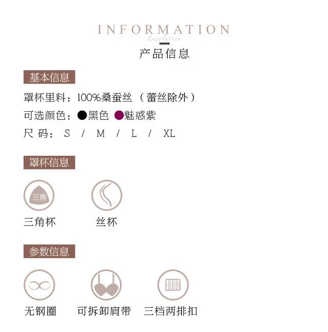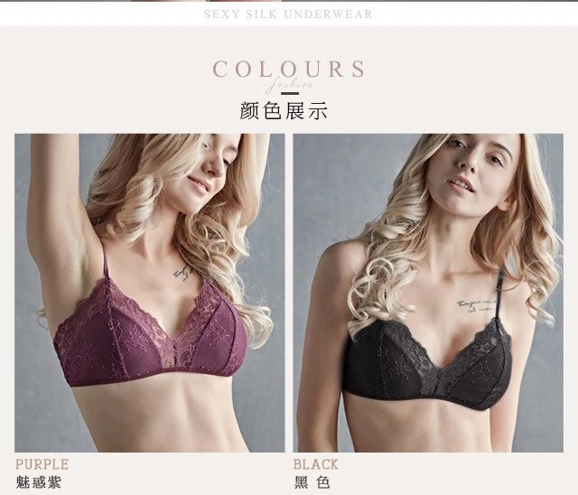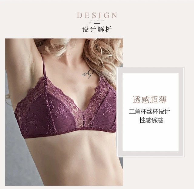 金三塔真丝性感蕾丝绣花三角杯文胸无钢圈超薄杯桑蚕丝抹胸内衣薄7NZF7B301