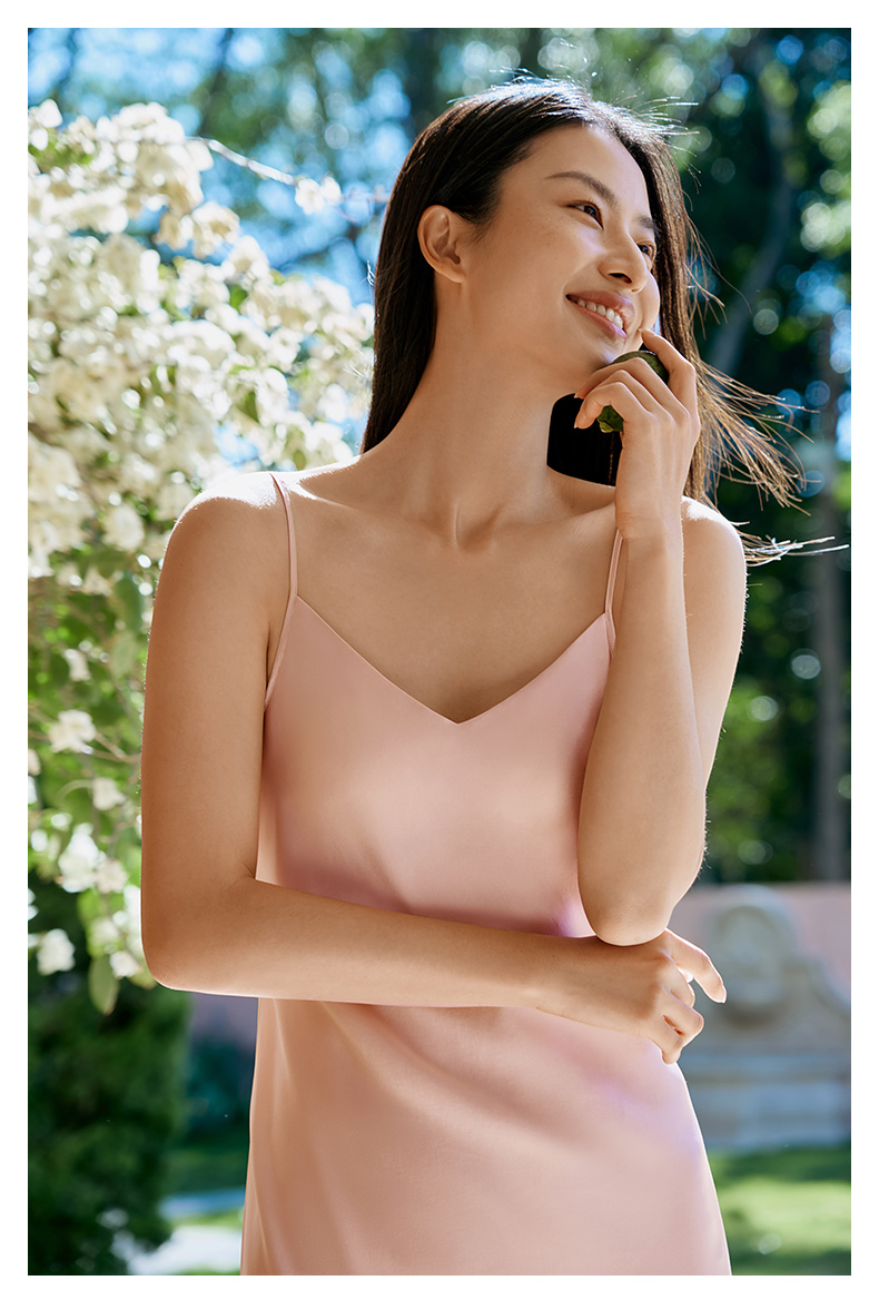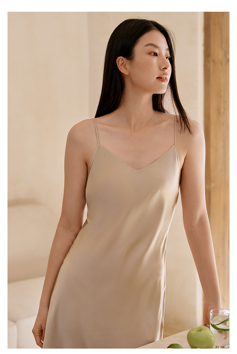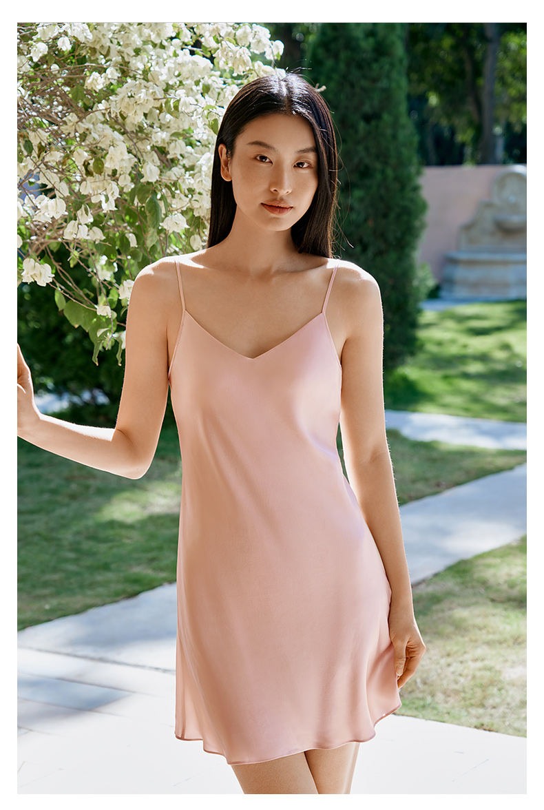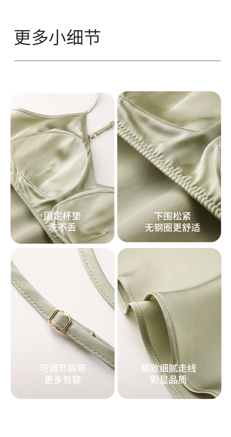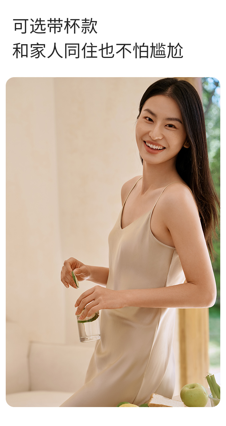 免穿文胸重磅真丝一体bra睡裙上蚕丝吊带睡衣女纯色打底裙金三塔(限价款) YSFFA312