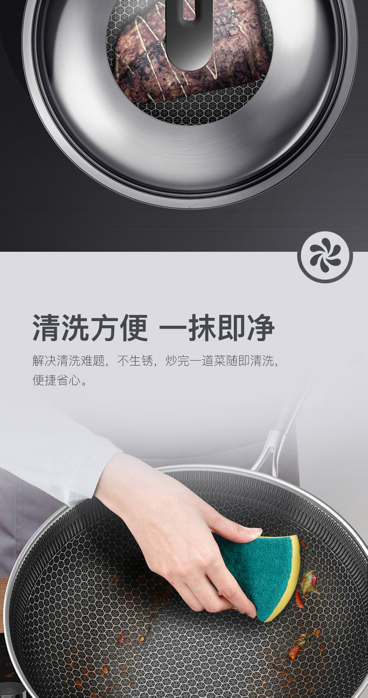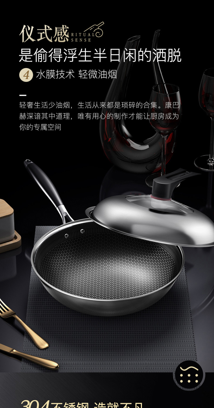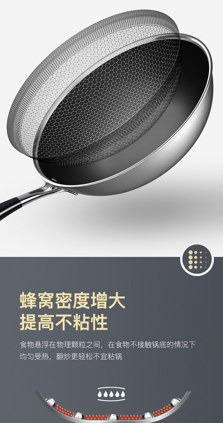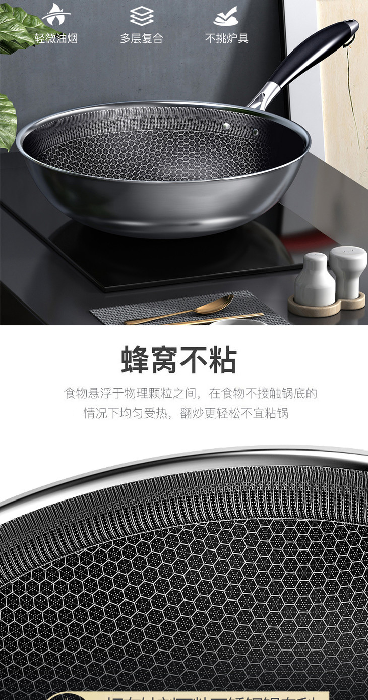 康巴赫升级款持家款炒锅蜂窝不粘锅不锈钢炒锅电磁炉炒菜家用