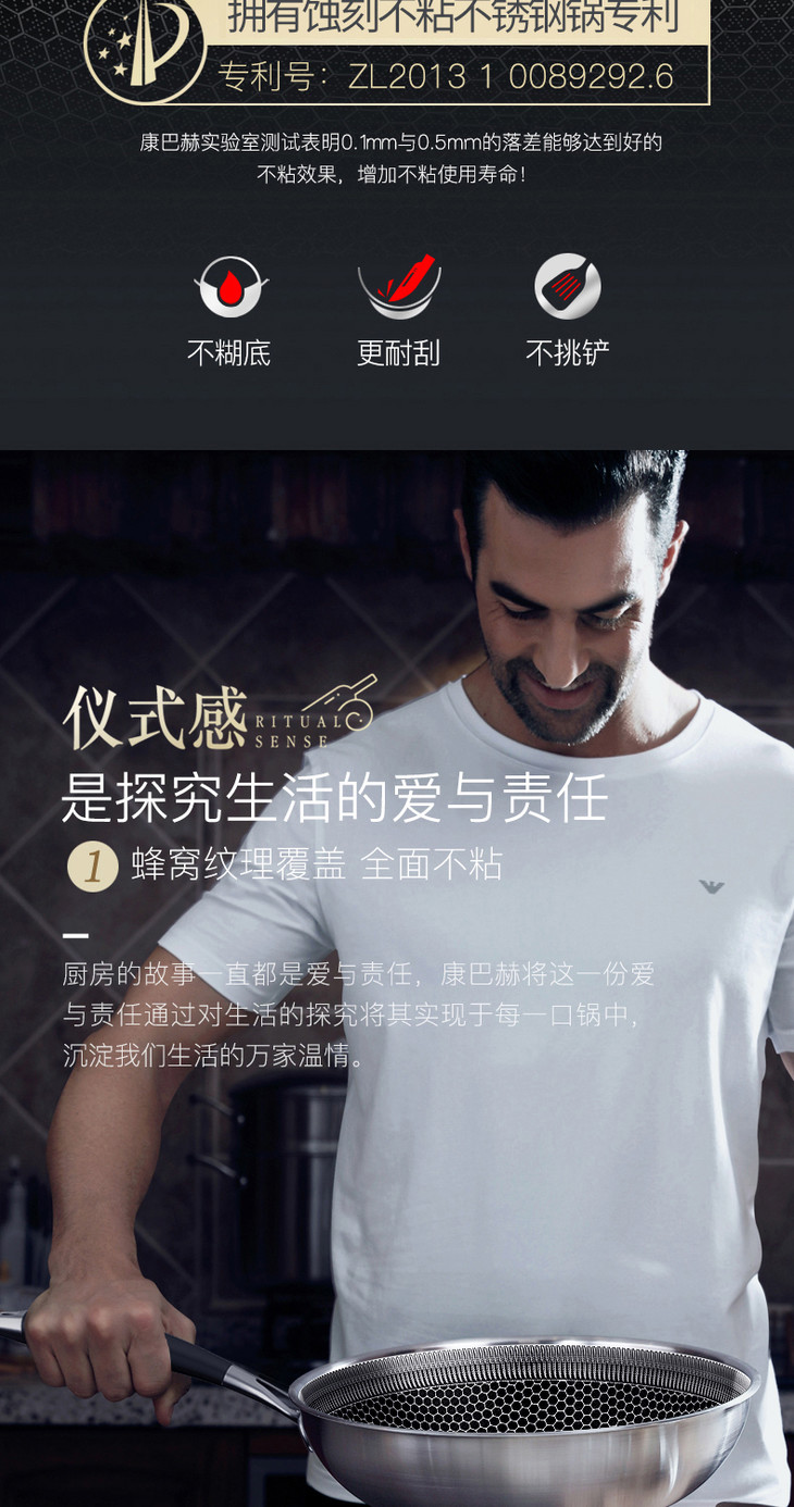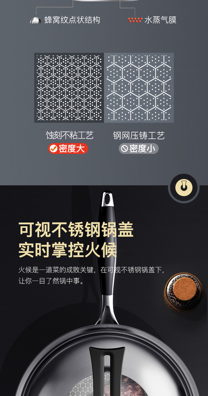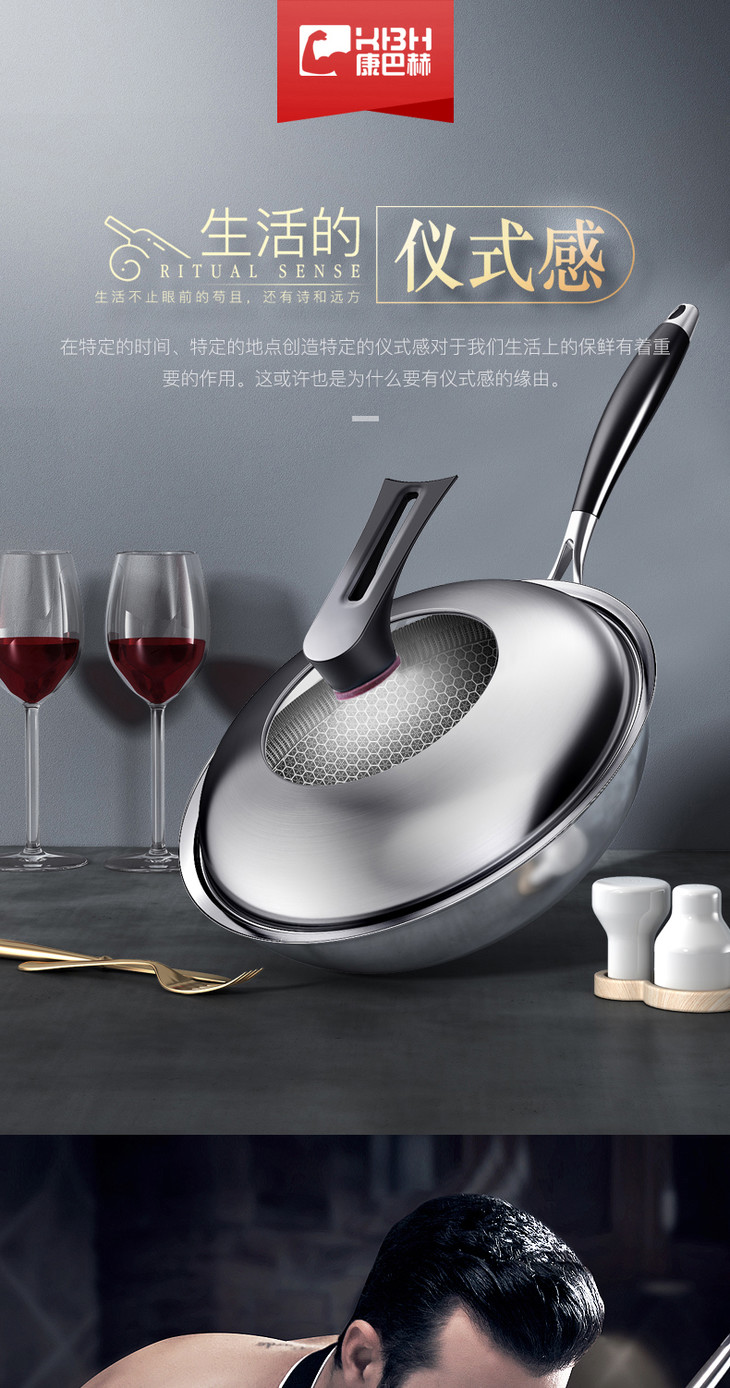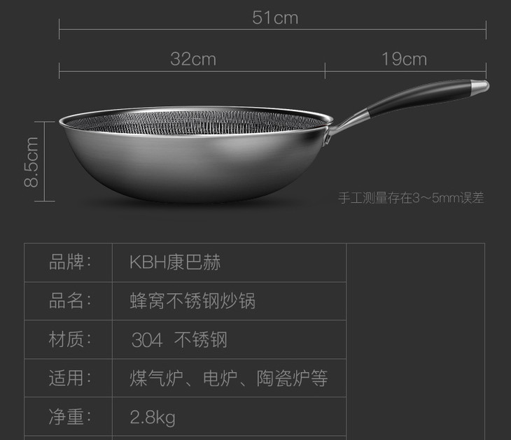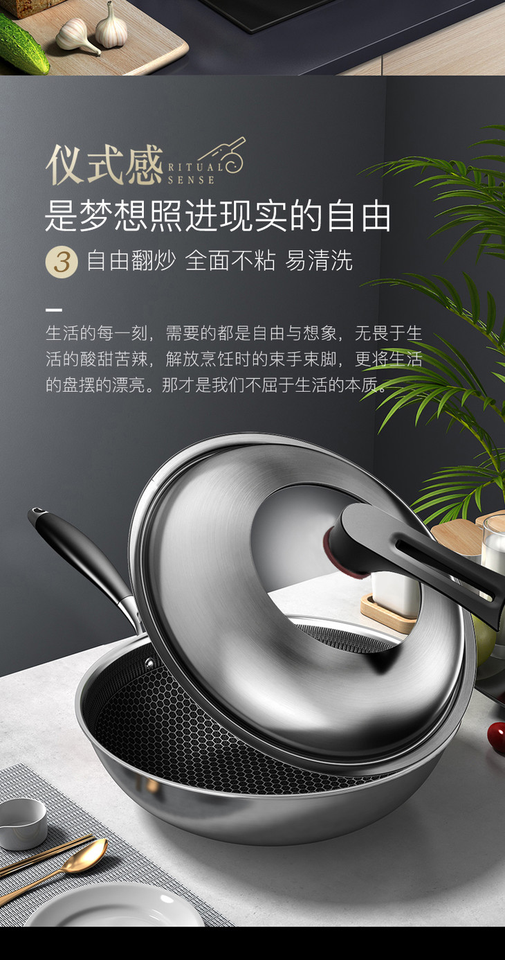 康巴赫升级款持家款炒锅蜂窝不粘锅不锈钢炒锅电磁炉炒菜家用