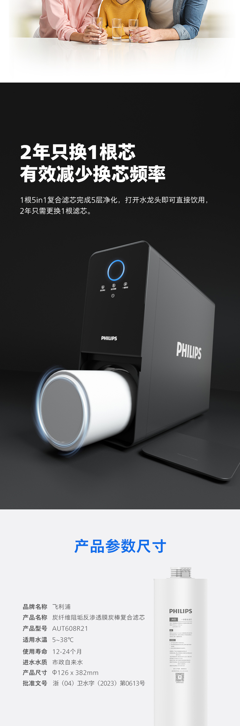 飞利浦(PHILIPS)厨下净水器滤芯AUT608R21 适用:AUT6060R21/93(800G)