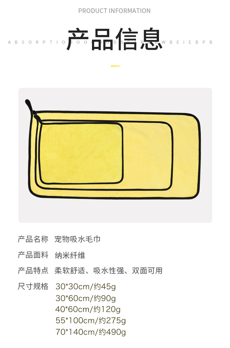 【柔软舒适 擦完速干】宠物用品狗狗猫咪洗澡浴巾纤维珊瑚绒双面加厚吸水毛巾大号