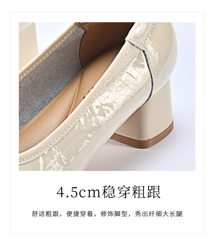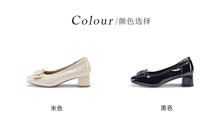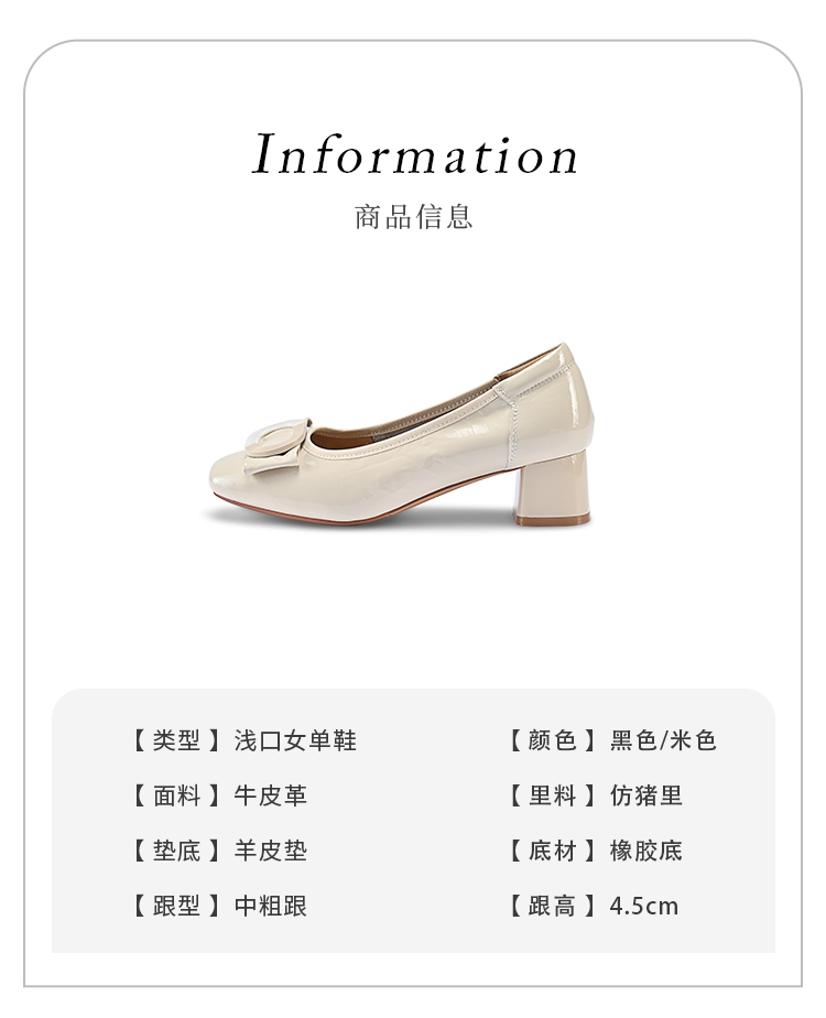 经典鲨2026年春季专柜新品牛皮革时尚方头中粗跟浅口单鞋女KW333-617021