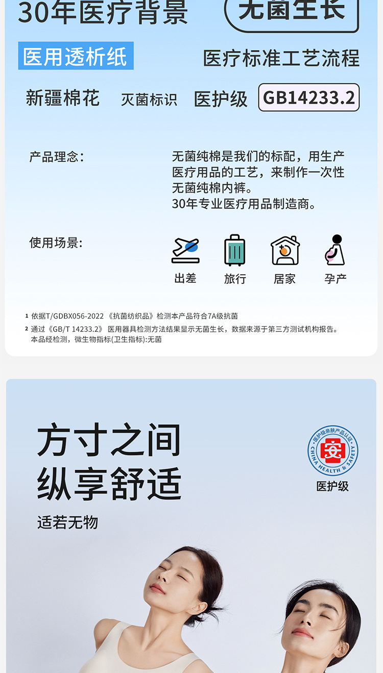 蓓安适一次性内裤纯棉无菌男女旅行旅游免洗底裤全棉短裤
