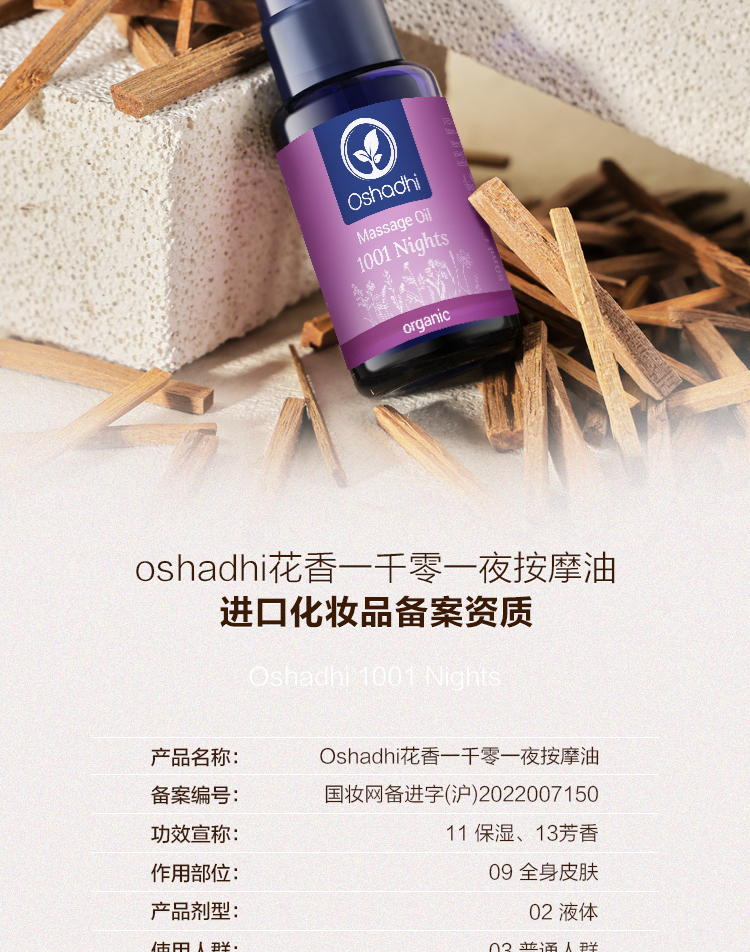 Oshadhi德国O家 花香一千零一夜胸部按摩油身体油 保湿 效期26.5起