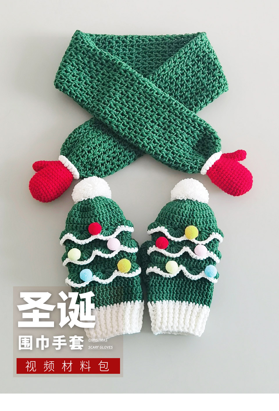 苏苏姐家圣诞围巾手套手工DIY编织钩针围巾手套套装毛线团材料包