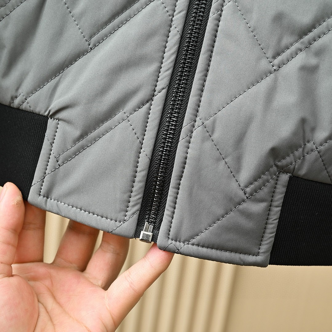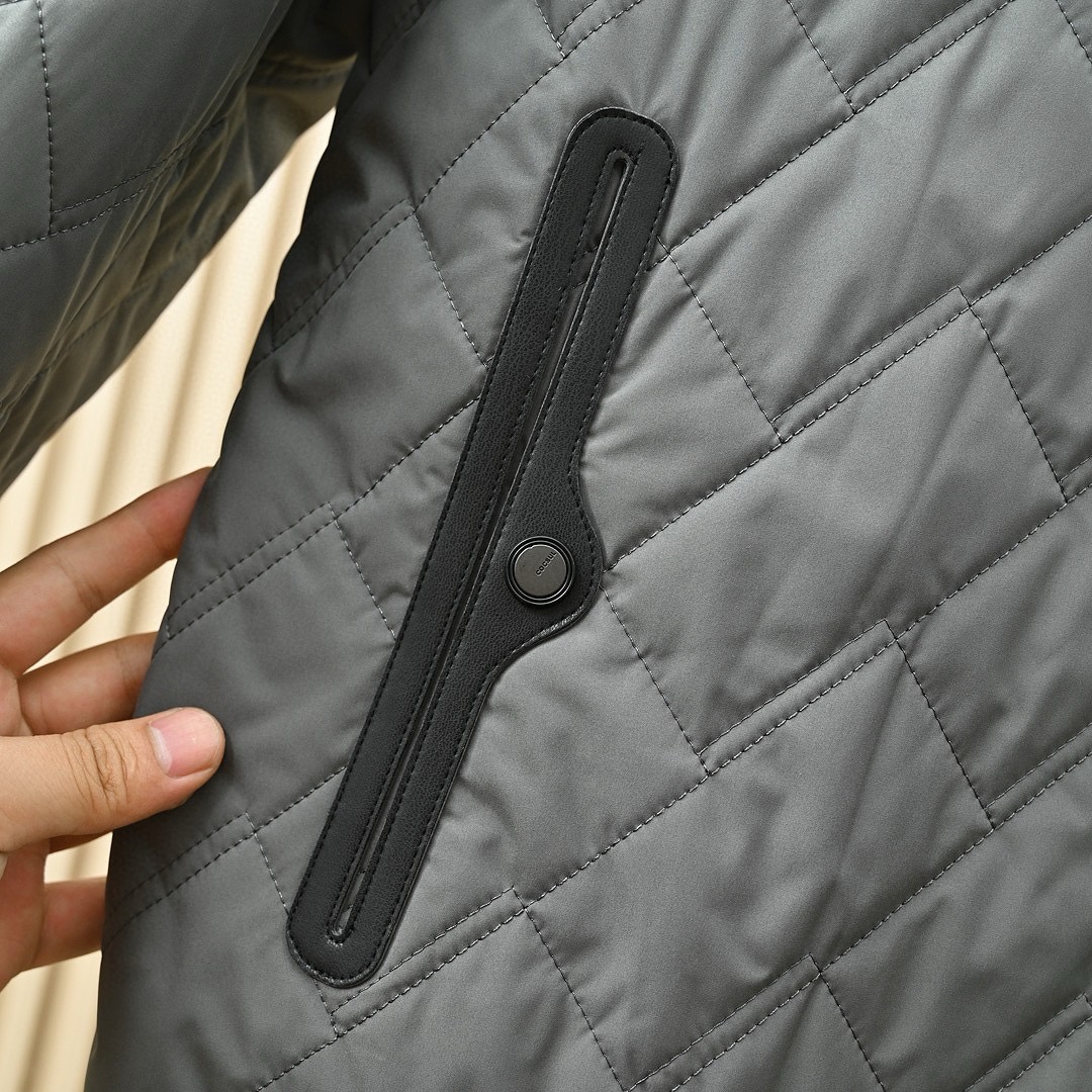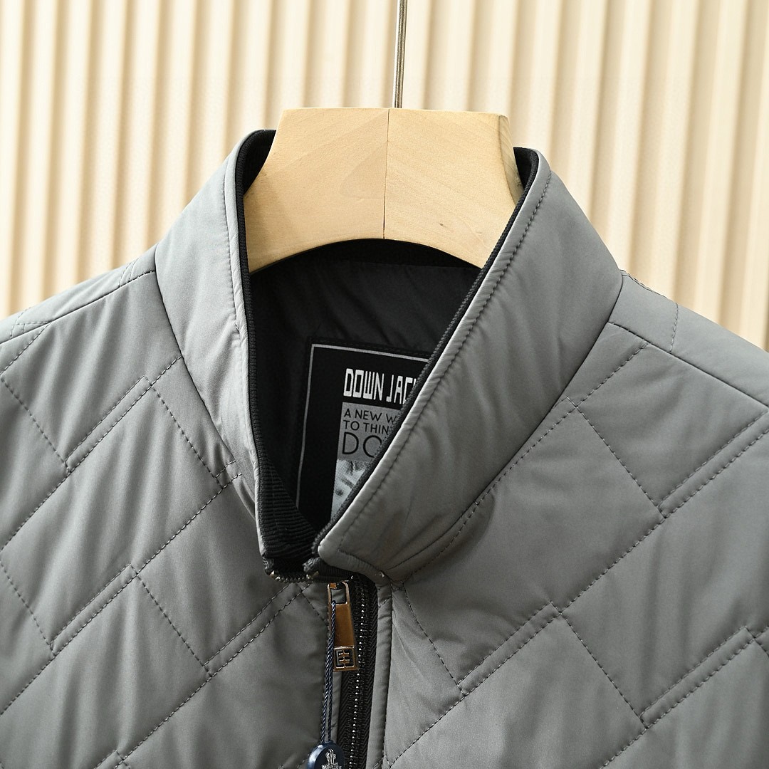 蒙口2026春秋新款桑蚕丝轻薄立领男士菱形格棉服外套