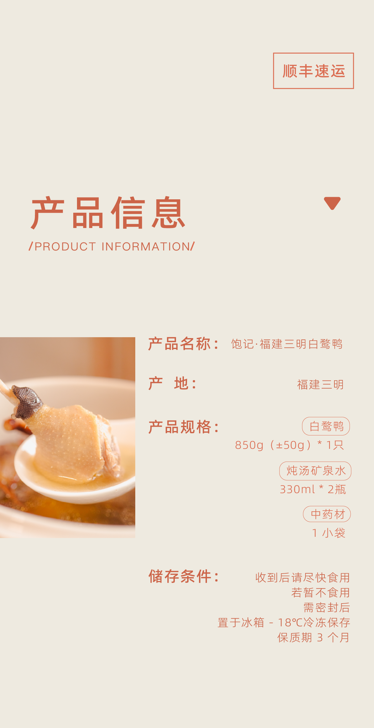 饱记福建三明白骛鸭紧实鲜甜闽西名特产