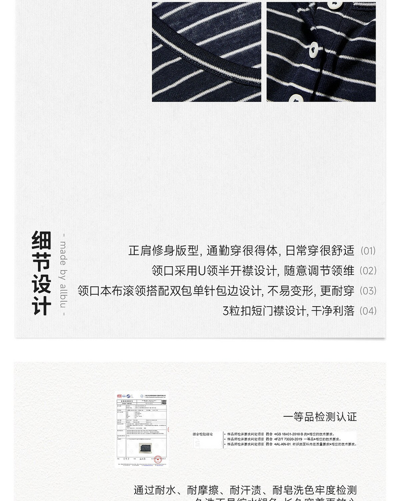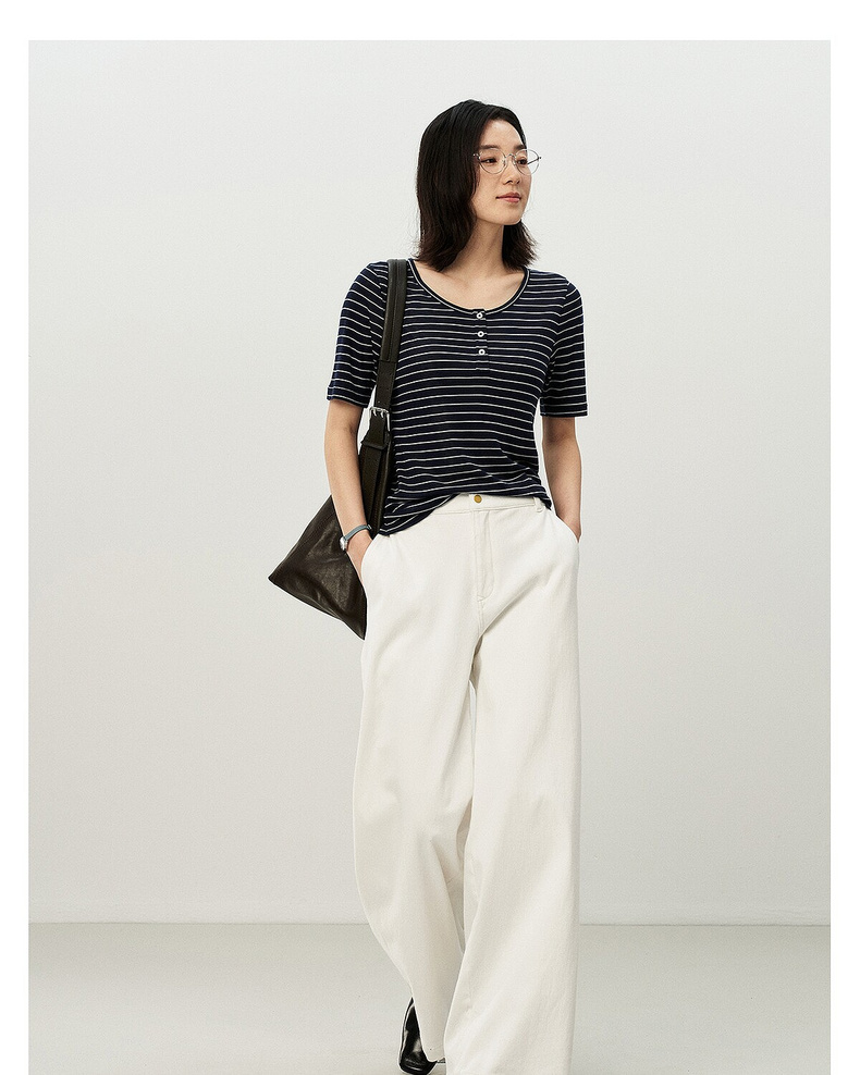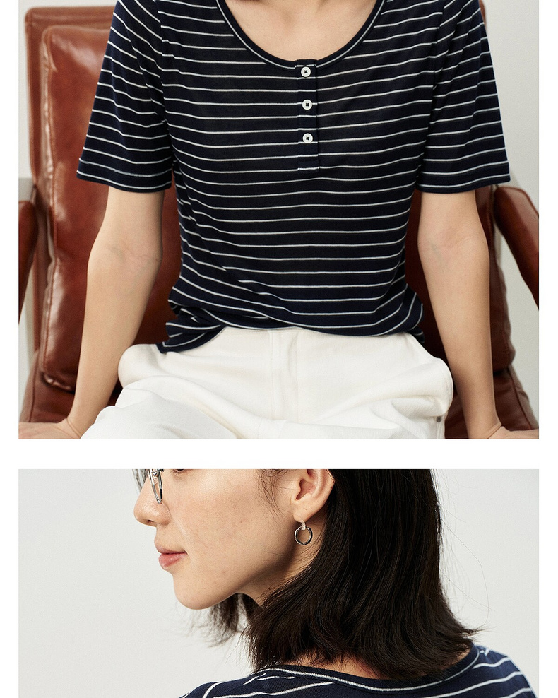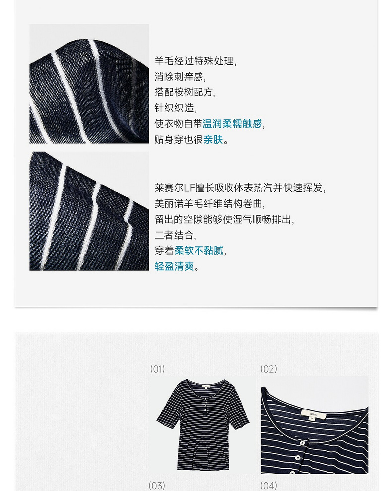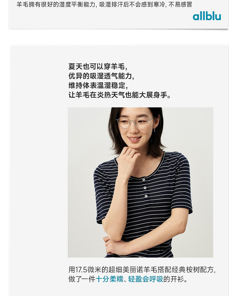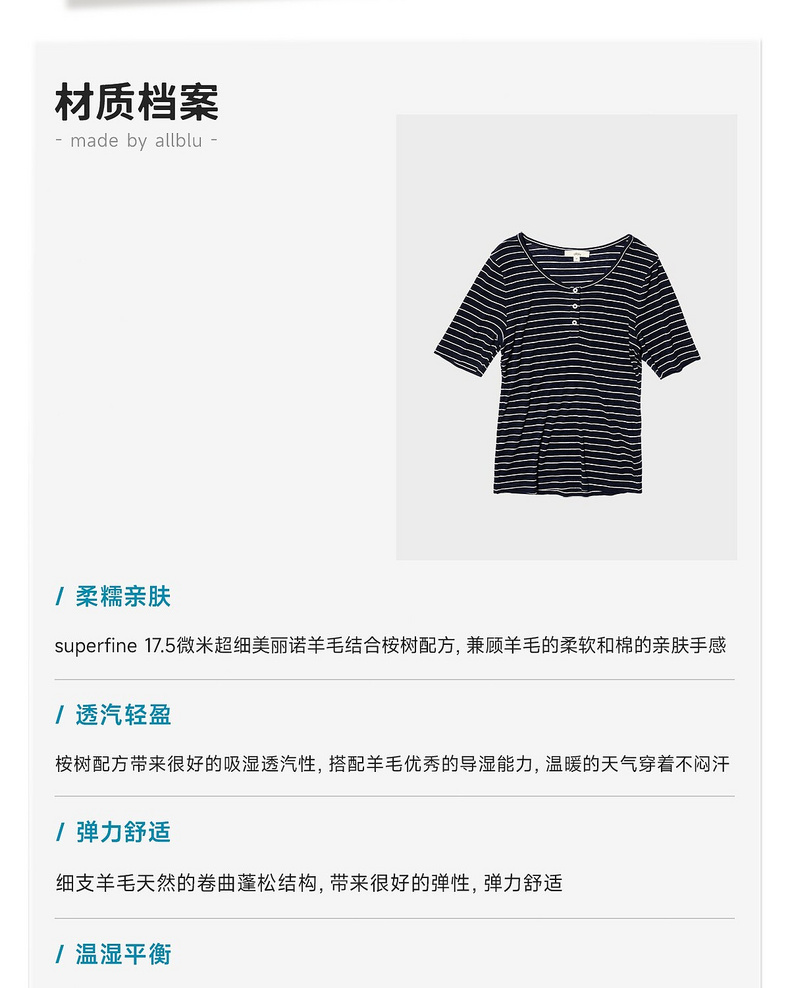 【夏Vol.1】allblu女装“夏天的透气配方”26春夏【桉树羊毛】条纹短袖T恤ZY