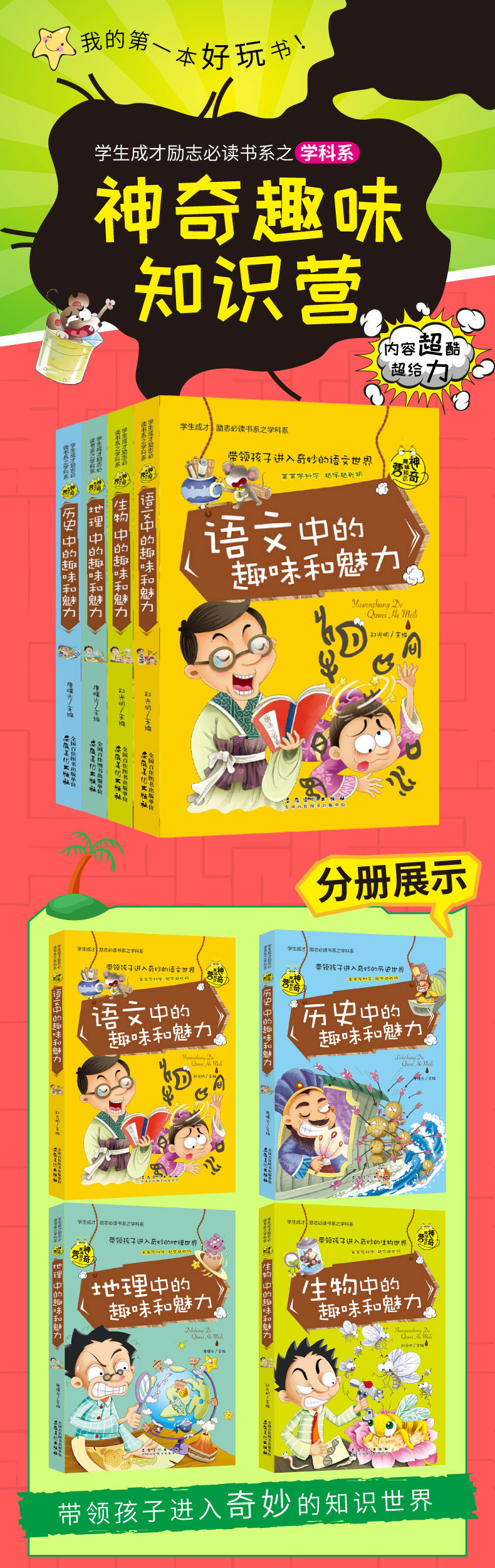 彩图版语文历史地理生物4册 学生成才励志必读书系之学科系 神奇趣味知识营我的第一本好玩文科书 中小学生课外书籍初中生读物