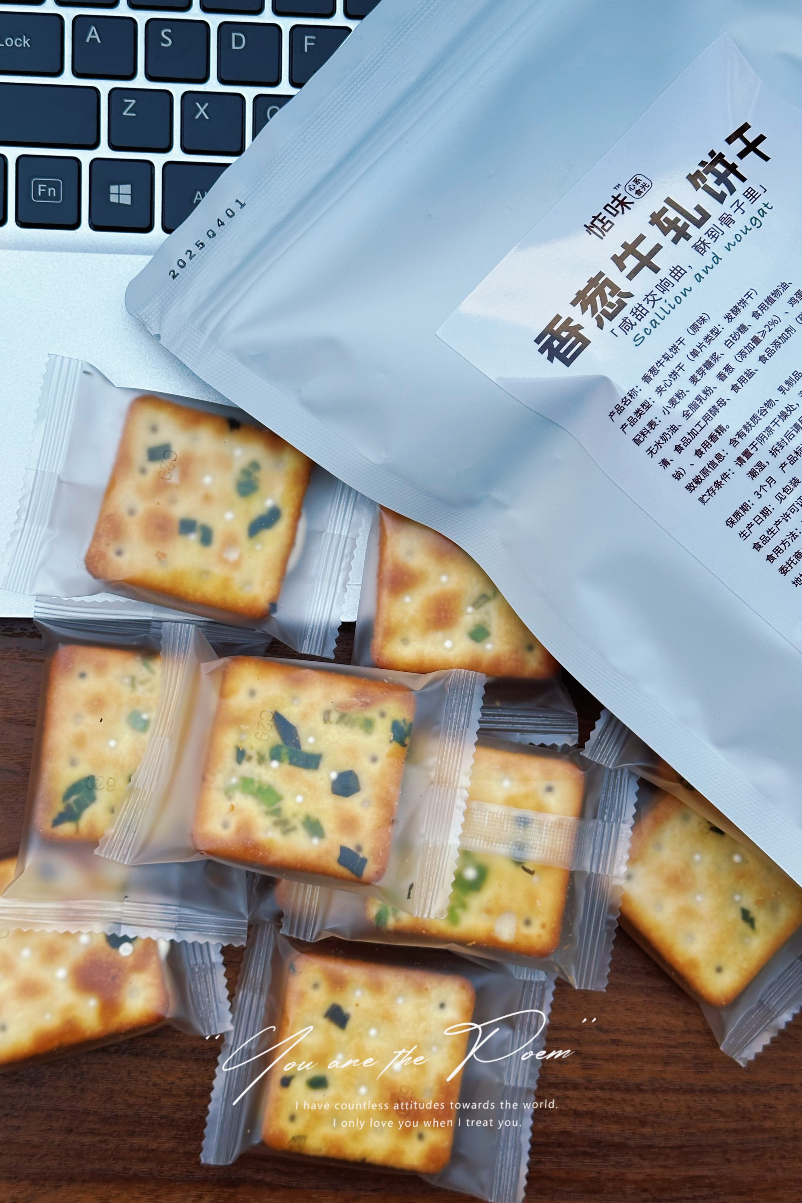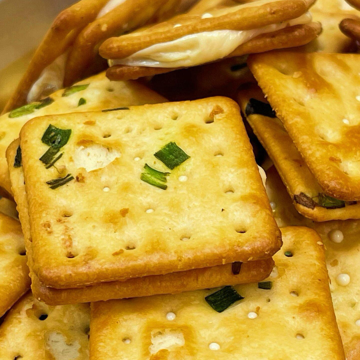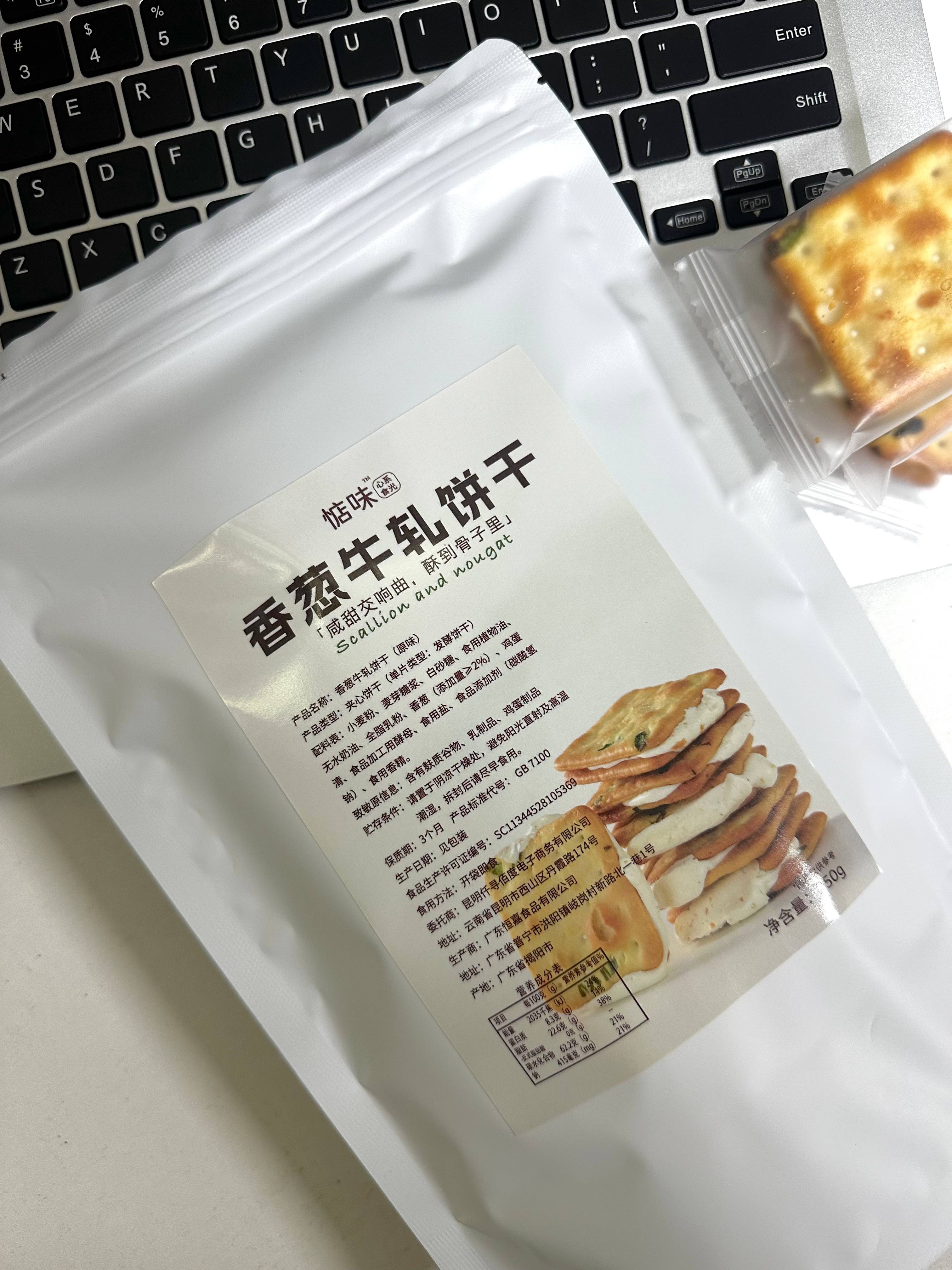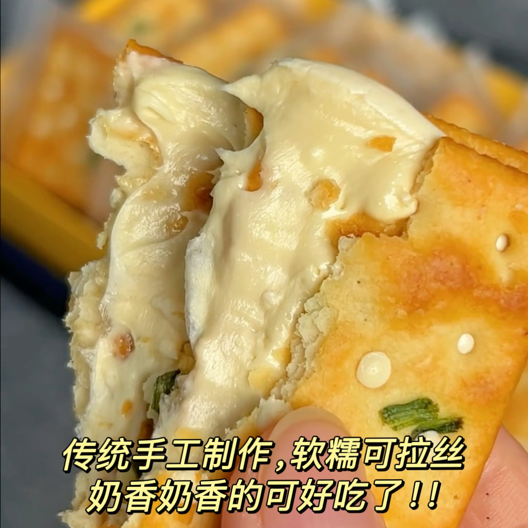 惦味 香葱牛轧糖夹心饼干250g*2袋 (17小包/袋)古早网红休闲零食,一口直接沦陷;咸香酥脆的香葱味苏打饼干+超能拉丝的奶香牛轧糖,好吃到停不下来;独立包装,携带方便