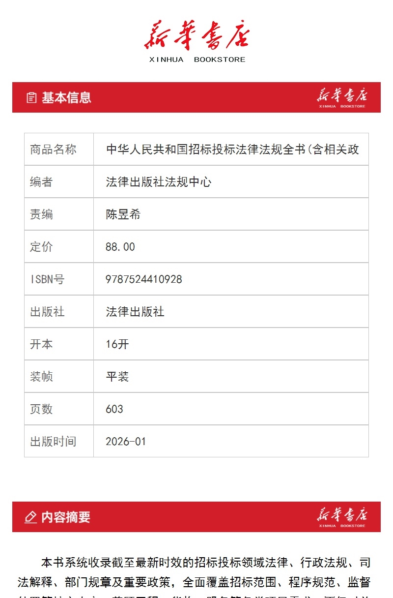 2026年版中华人民共和国招标投标法律法规全书:含相关政策