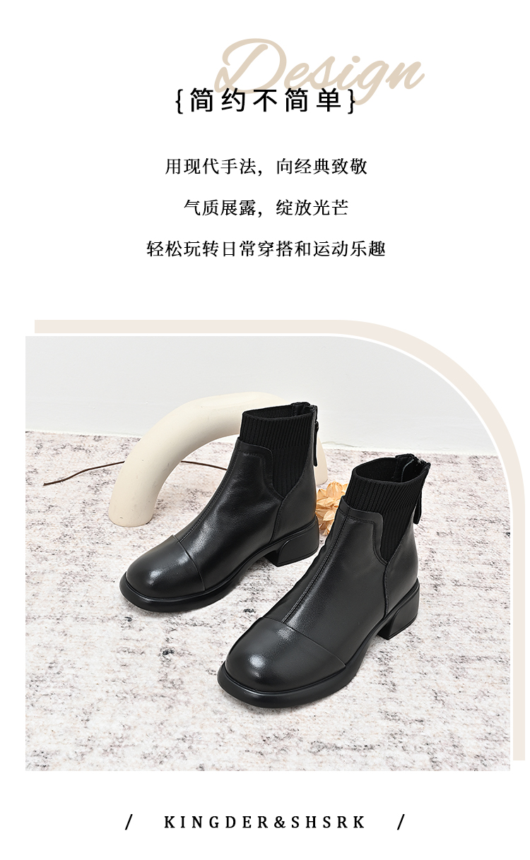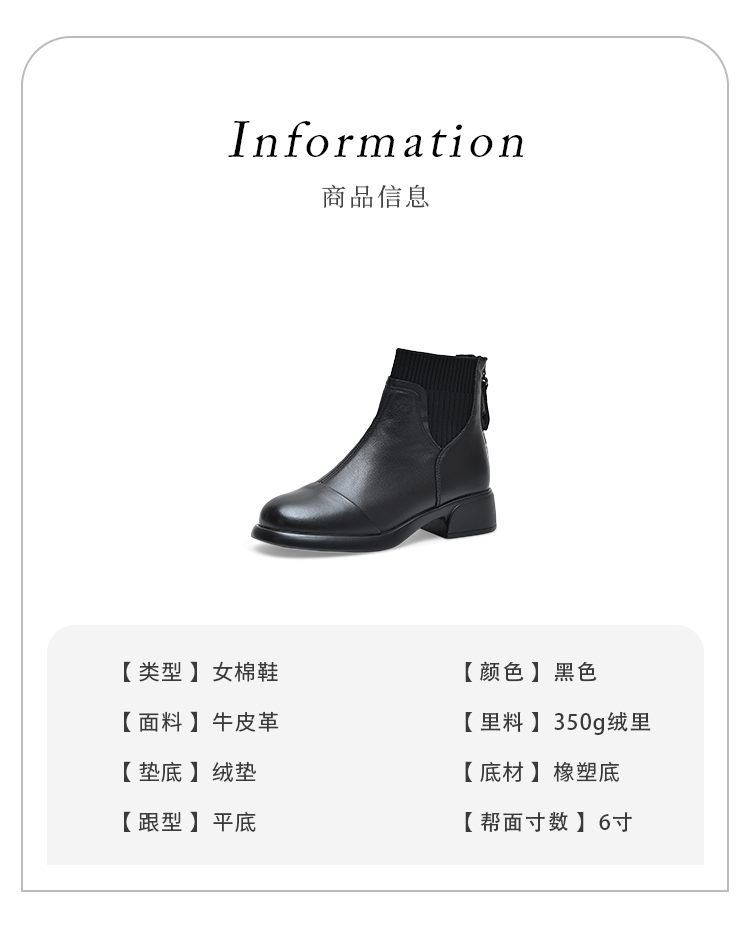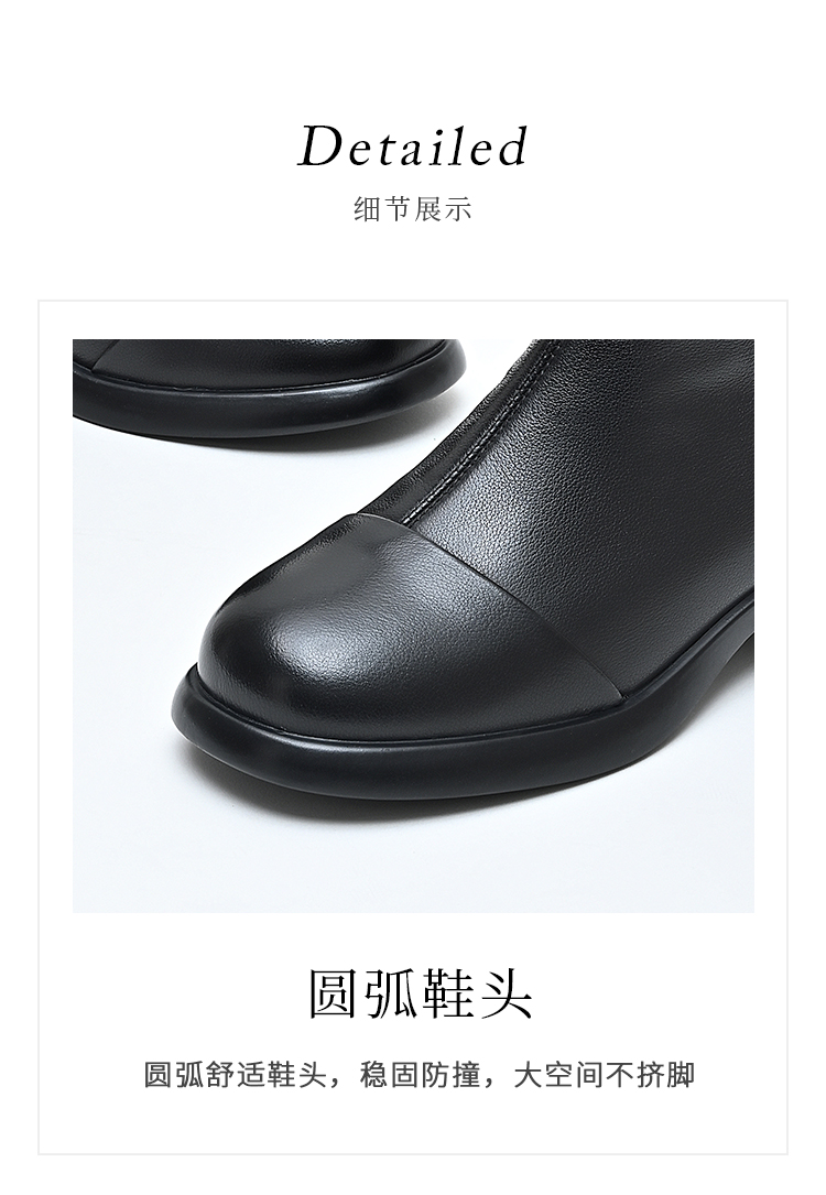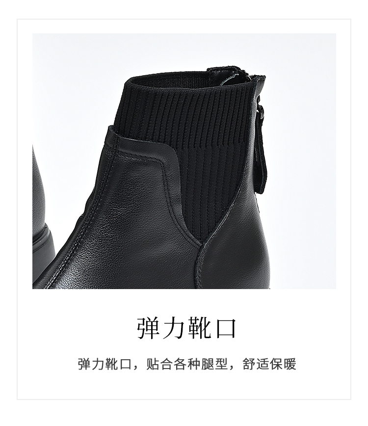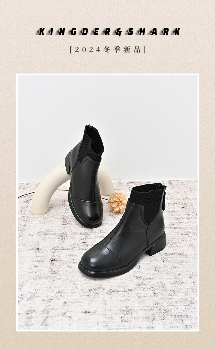 经典鲨2024年冬季款百搭圆头黑色加绒保暖简约时装短筒靴女KW289-D58021