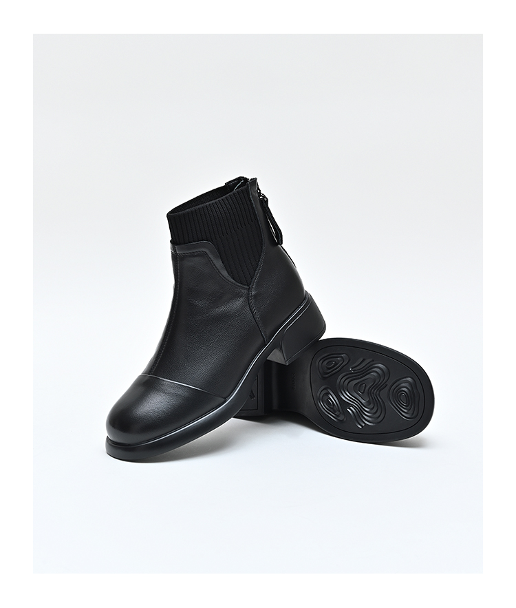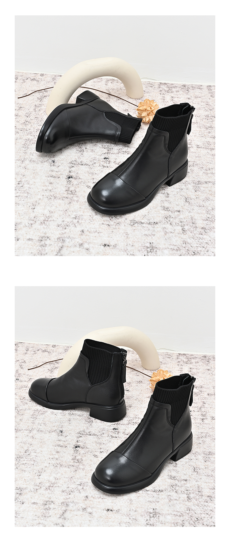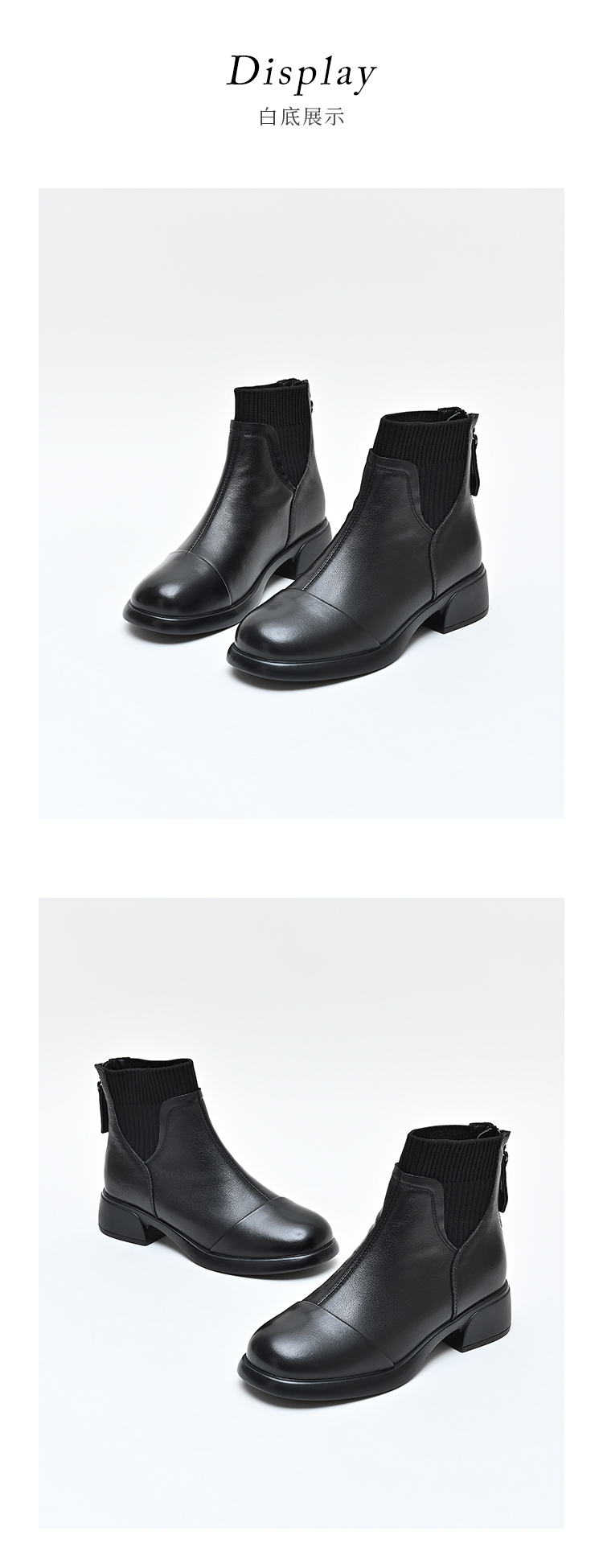 经典鲨2024年冬季款百搭圆头黑色加绒保暖简约时装短筒靴女KW289-D58021