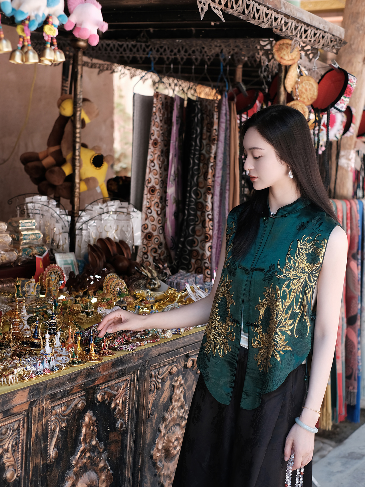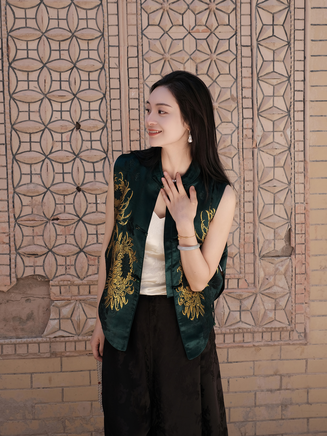 盛唐牡丹盛奢系列|织金老软缎菊花纹圆摆马甲(特殊商品不退不换)