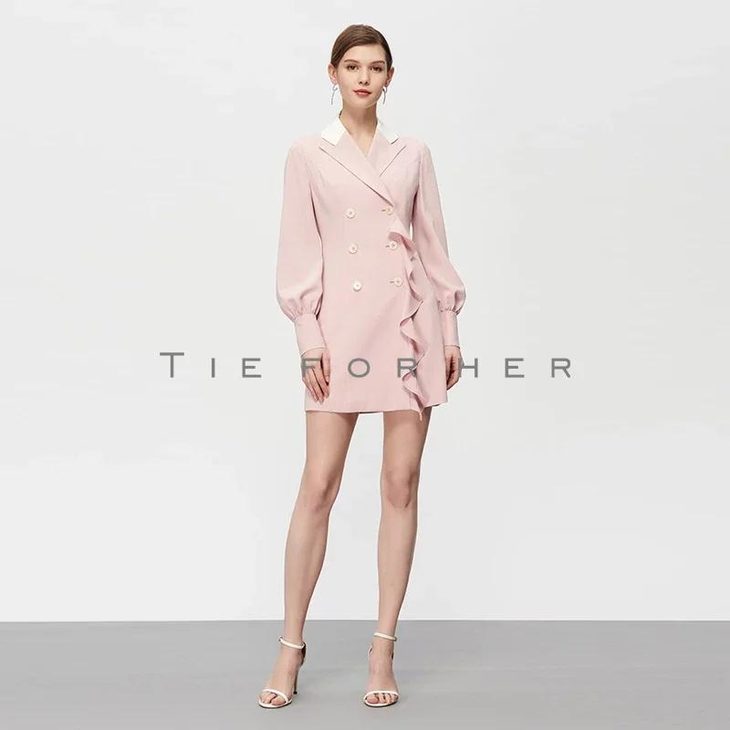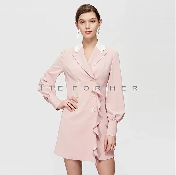19SSDU125 茱萸粉荷叶边西装外套
