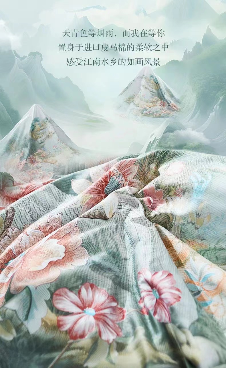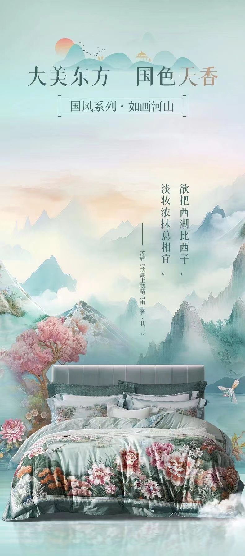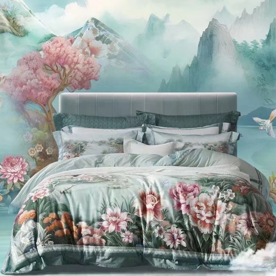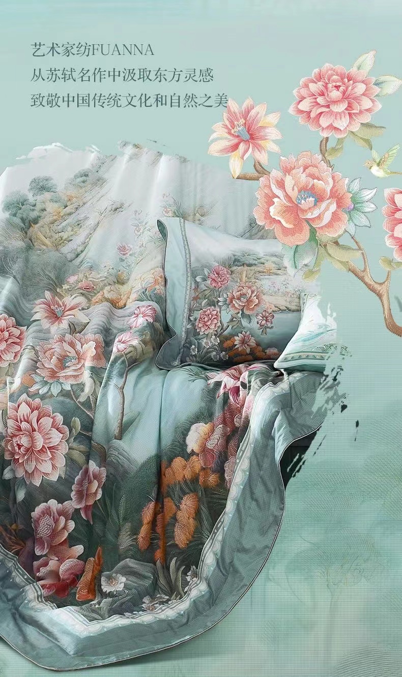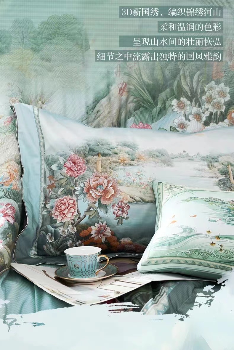 【春上新】10楼 富安娜 国绣四件套-如画河山/绿 230*229cm 吊牌价7980元 活动价3680元