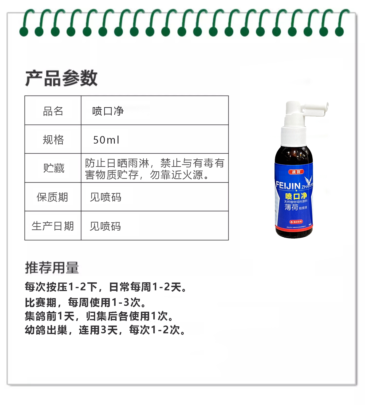 【喷口净】50ml/瓶种幼鸽口黄白点毛滴念珠菌清(战羽)