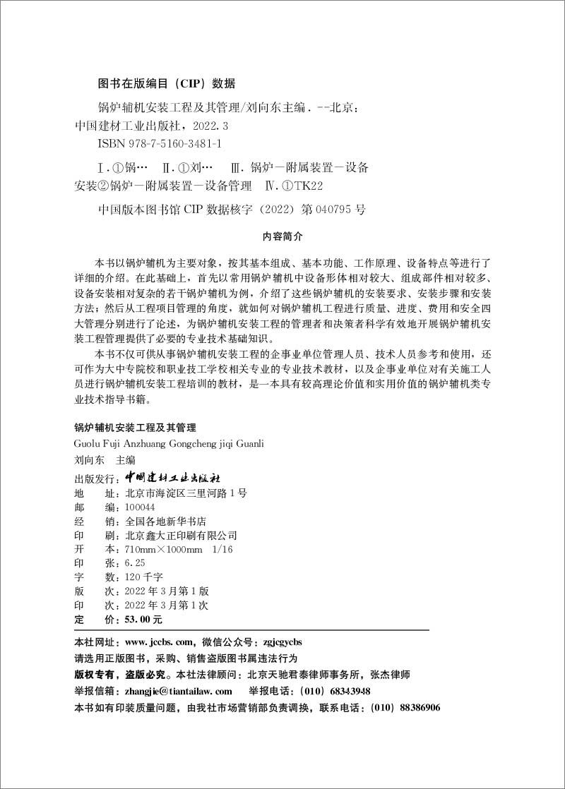本书不仅可供从事锅炉辅机安装工程的企事业单位管理人员、技术人员参考和使用,还可作为大中专院校和职业技工学校相关专业的专业技术教材,以及企事业单位对有关施工人员进行锅炉辅机安装工程培训的教材,是一本具有较高理论价值和实用价值的锅炉辅机类专业技术指导书籍。