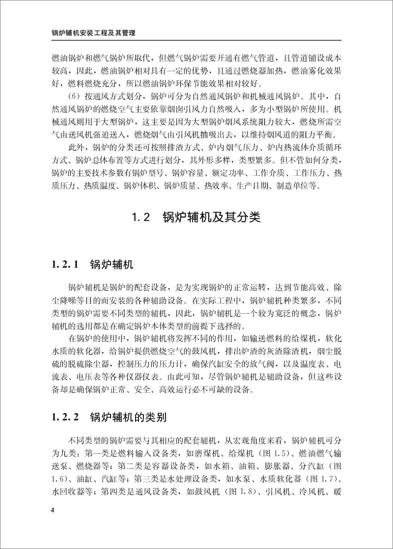 本书以锅炉辅机为主要对象,按其基本组成、基本功能、工作原理、设备特点等进行了详细的介绍。在此基础上,首先以常用锅炉辅机中设备形体相对较大、组成部件相对较多、设备安装相对复杂的若干锅炉辅机为例,介绍了这些锅炉辅机的安装要求、安装步骤和安装方法;然后从工程项目管理的角度,就如何对锅炉辅机工程进行质量、进度、费用和安全四大管理分别进行了论述,为锅炉辅机安装工程的管理者和决策者科学有效地开展锅炉辅机安装工程管理提供了必要的专业技术基础知识。
