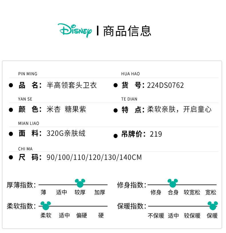 【商场同款】迪士尼女童秋季高领保暖加绒套头卫衣224DS0762
