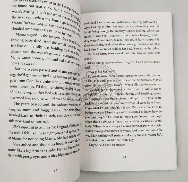 在《羽毛》中,三度纽伯瑞奖得主杰奎琳·伍德森通过弗兰妮的视角,探寻了成长的方方面面。弗兰妮在“耶稣男孩”的影响下,慢慢学习着应对宗教思想、种族主义,感悟着友情、亲情、人与人之间的良善,并**次想要寻找“那个长着羽毛的东西”。