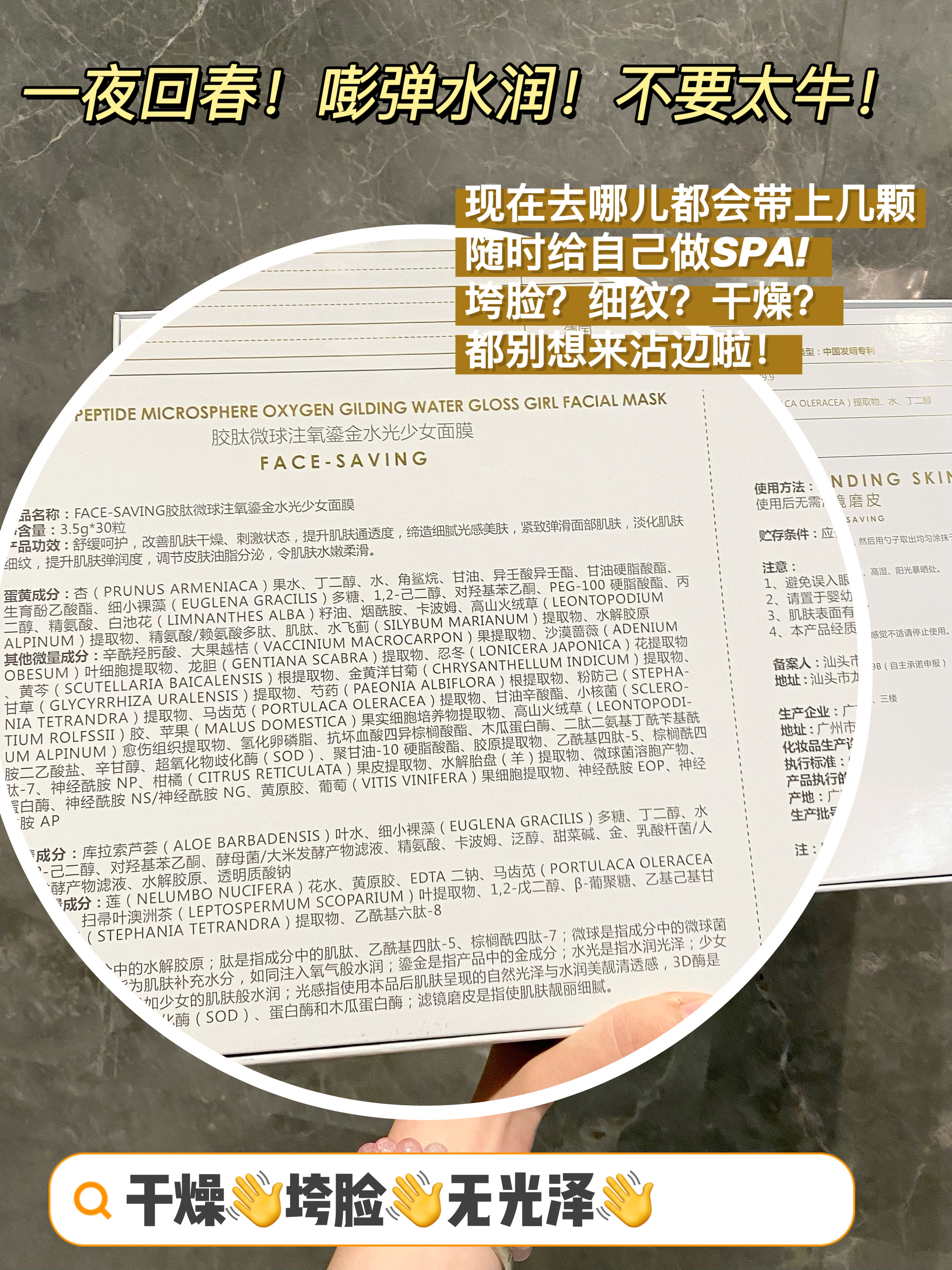 Face-saving胶肽注氧鎏金水光面膜,让你重回紧致嘭弹肌!