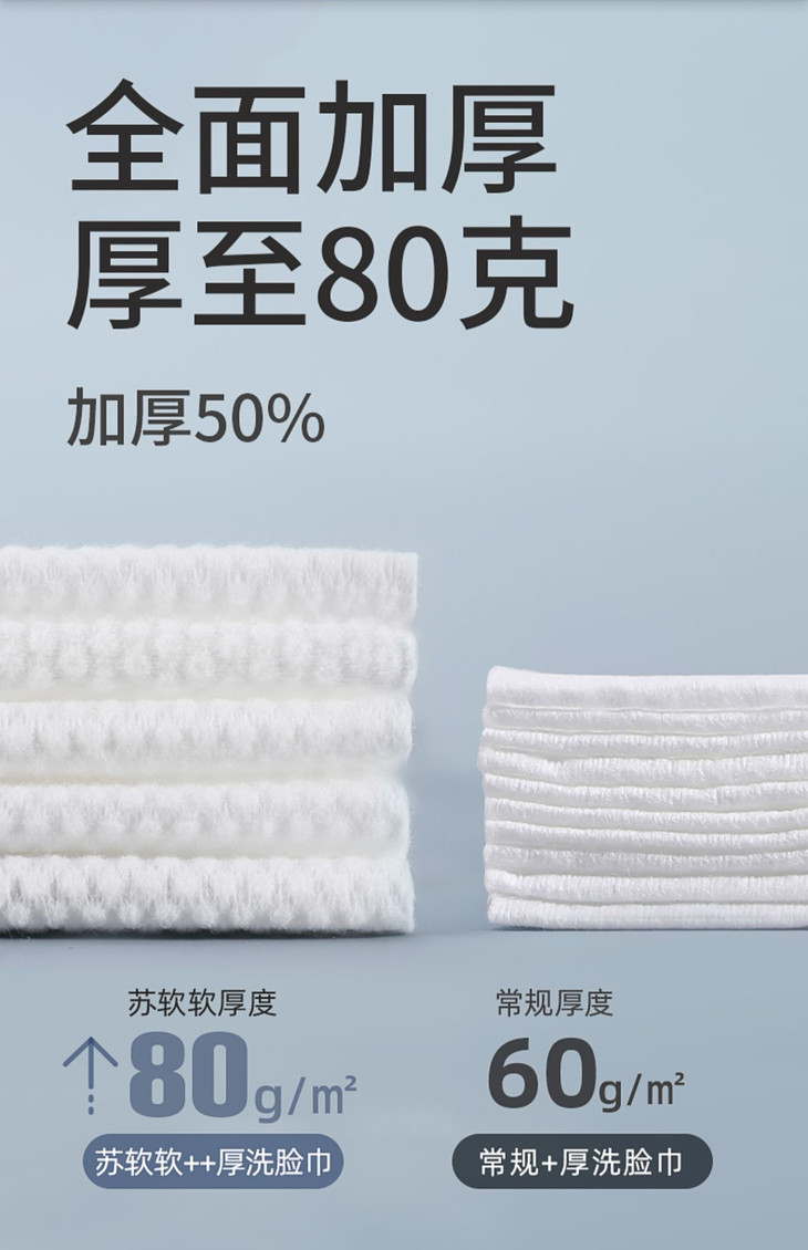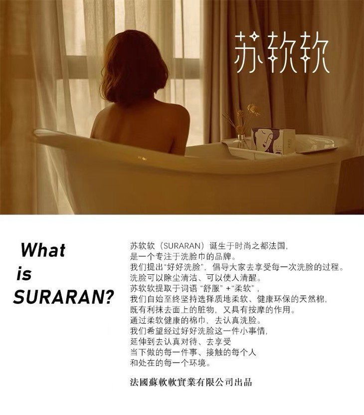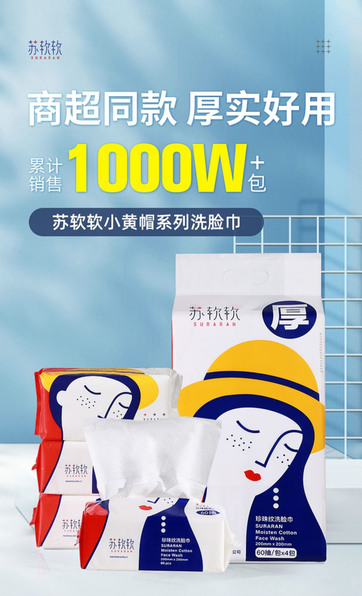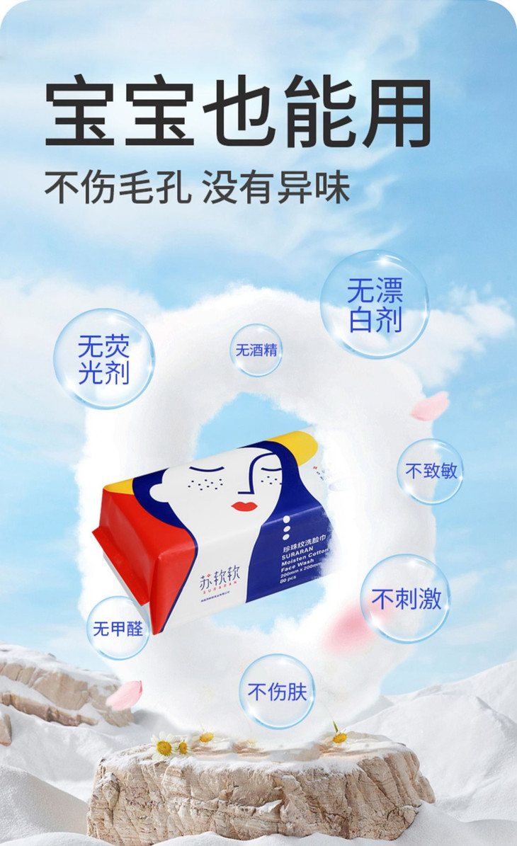 苏软软SURARAN是一个专注洗脸巾的品牌,名称取自“舒服”和“柔软”两词,用的是新疆优质长绒棉制作,柔软耐拉扯且不掉絮,长纤维材质的特性,加上3D珍珠纹,不仅拥有高吸水率,而且即使反复搓洗也不易变形。最新还升级成了加厚MAX版,重量提升至80g/㎡,更加厚实耐用咯!同时,洗脸巾还是20*20cm的加大尺寸,一张基本就能覆盖全脸,不用频繁更换,更省了!经检测,苏软软洗脸巾不含荧光剂、酒精等有害物质,温柔不刺激,适合各种肤质,连宝宝也都可以安心使用!