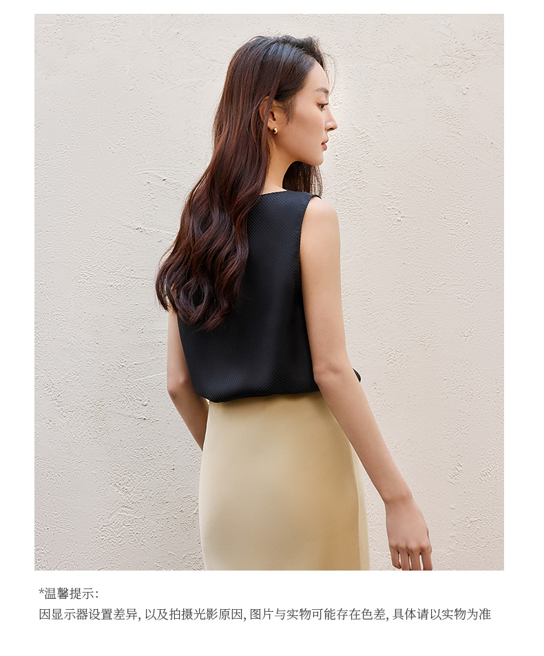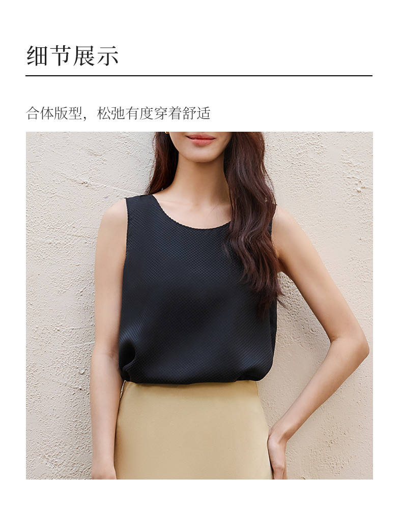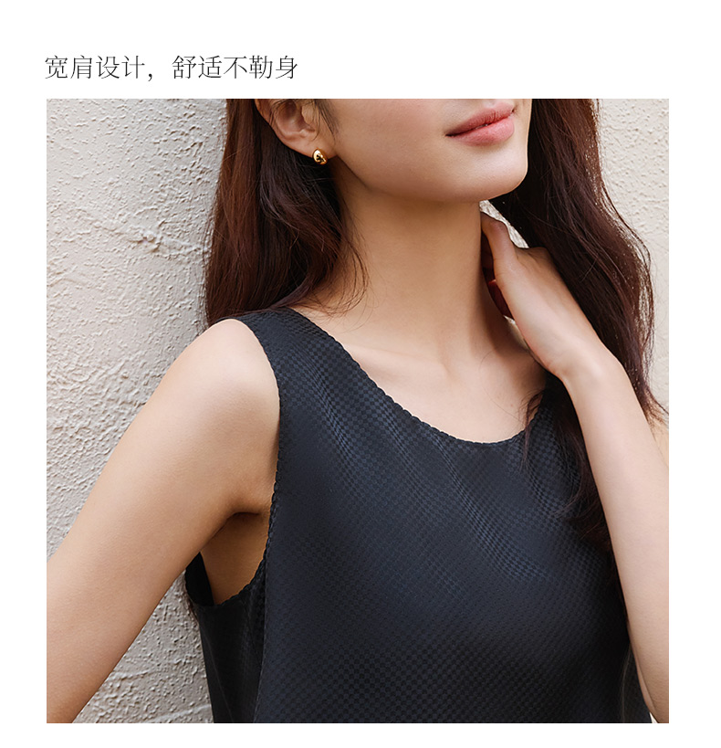 玳莎黑色格纹真丝无袖背心2025夏季新款女宽松圆领套头打底上衣 FB31001