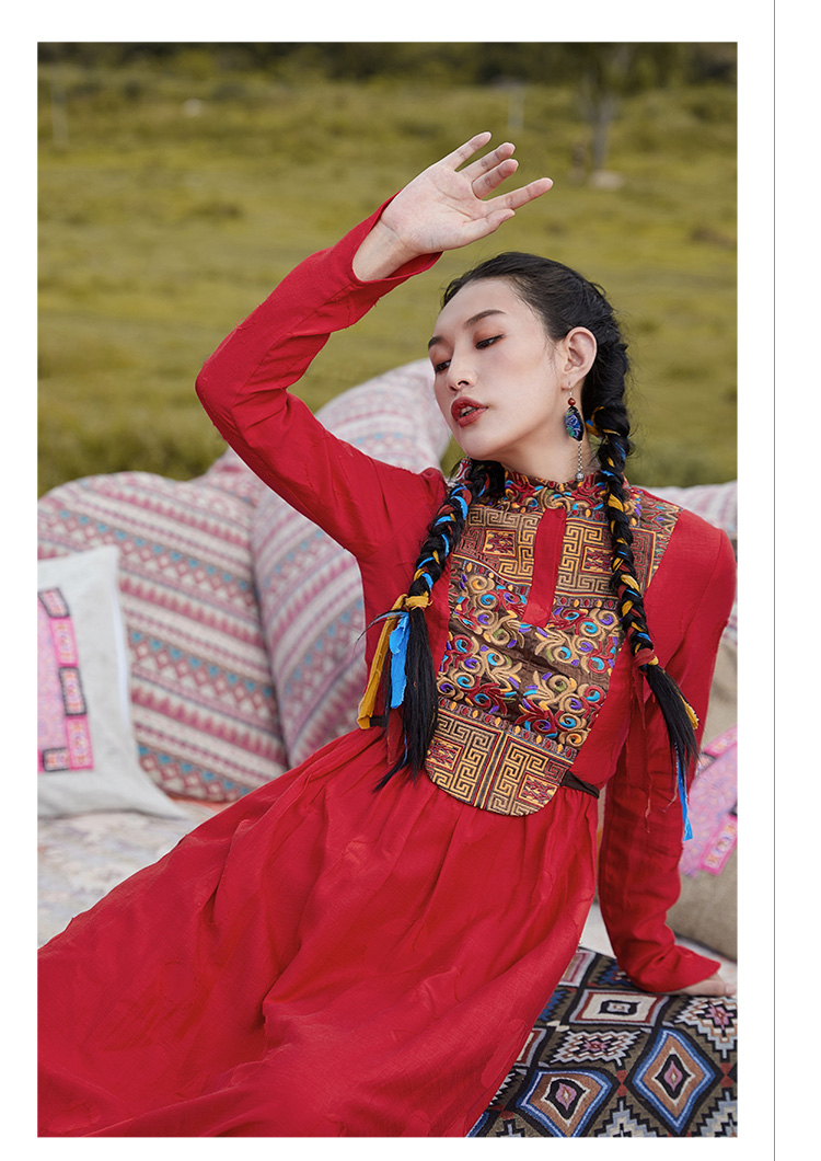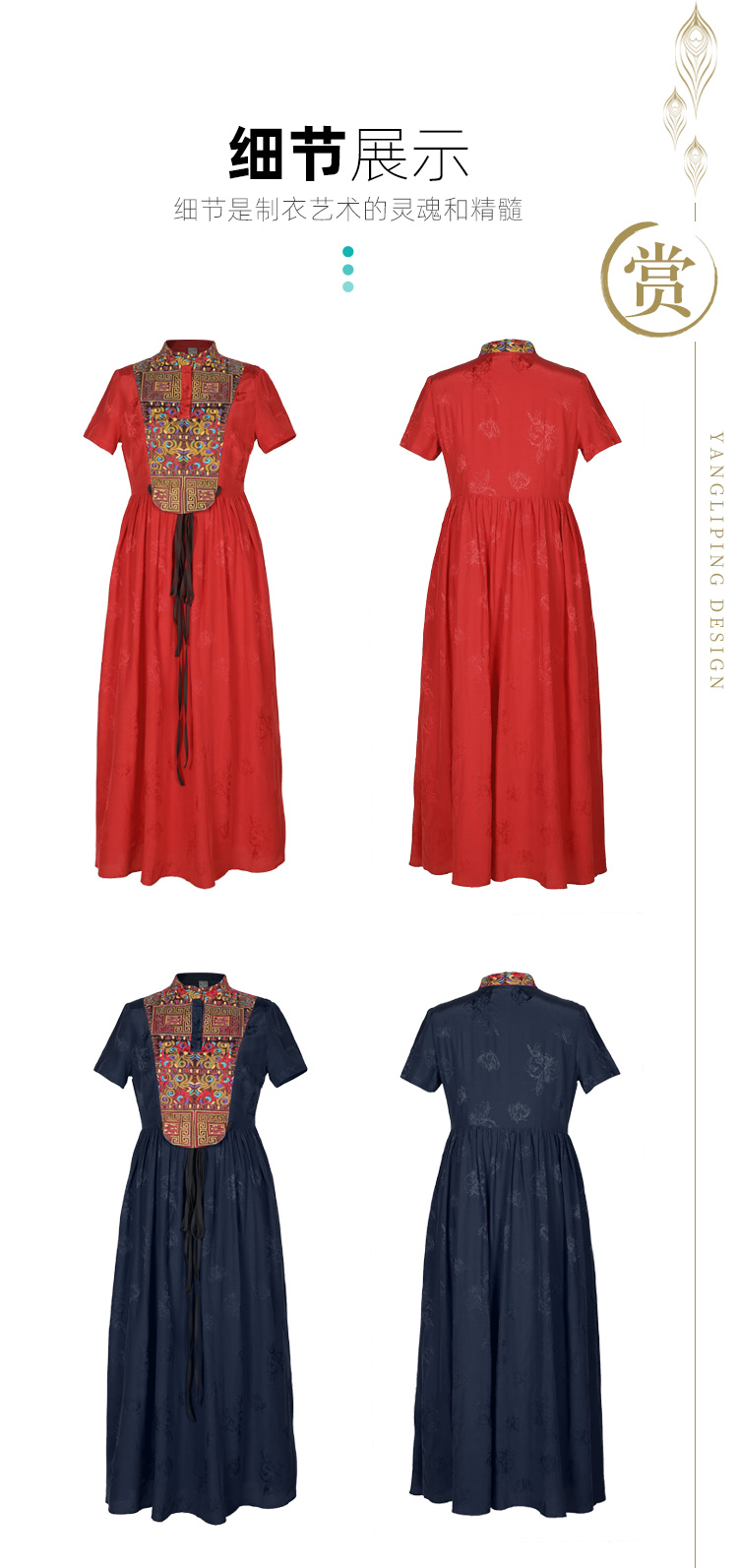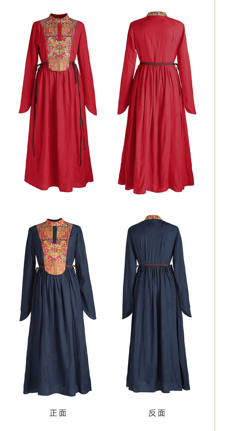 千金裘绣花复古连衣裙 | 杨丽萍老师同款 | 藏蓝色 红色