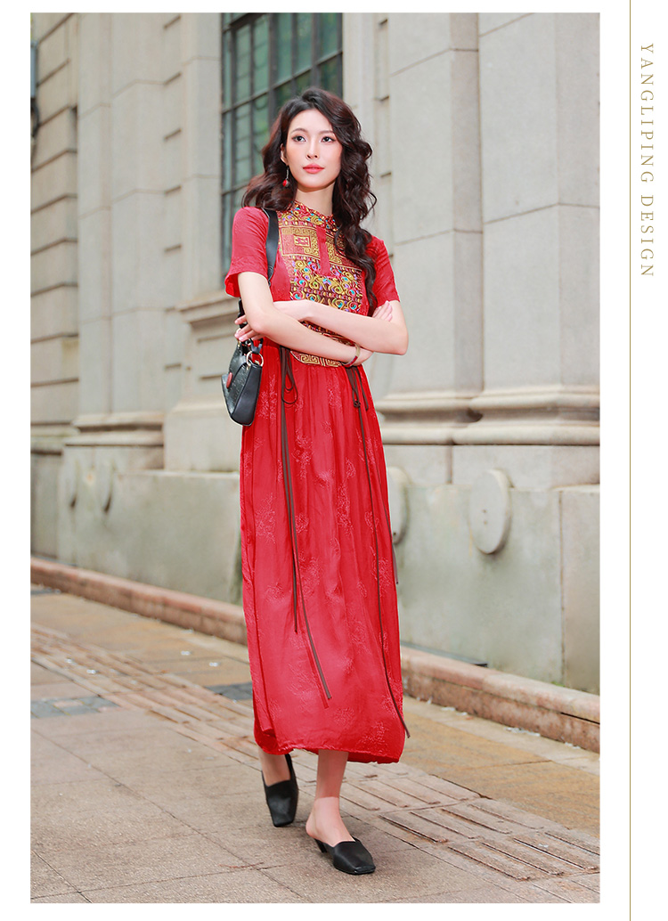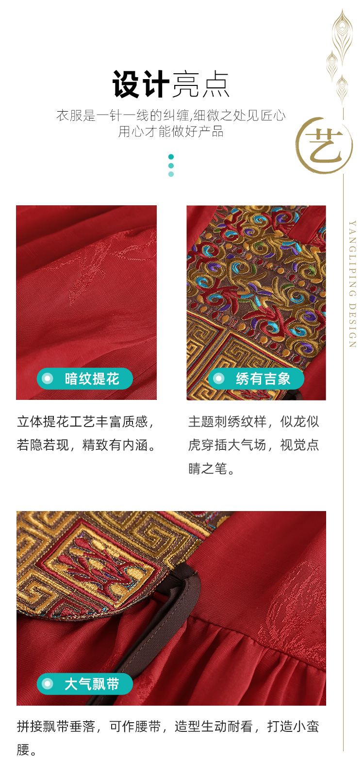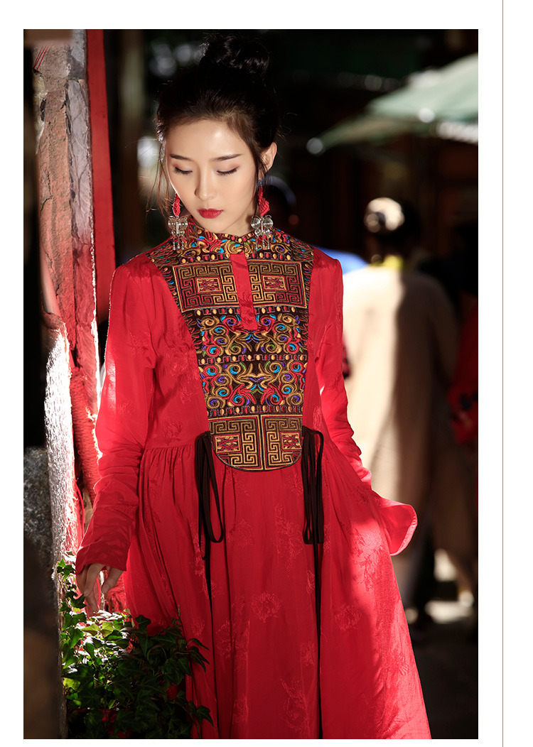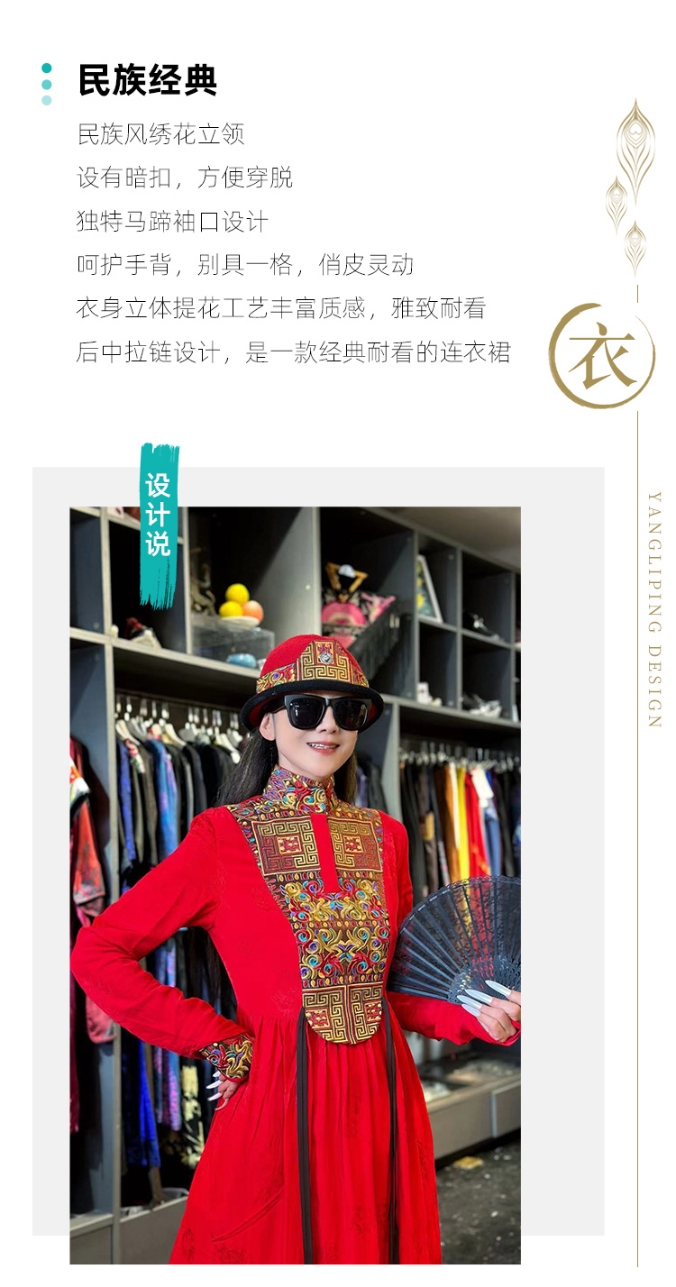 千金裘绣花复古连衣裙 | 杨丽萍老师同款 | 藏蓝色 红色