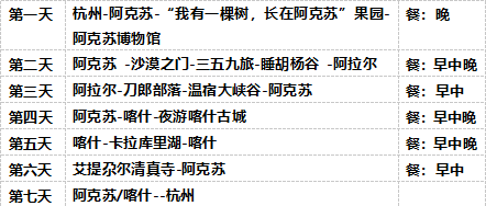 4、费用包含以下内容:杭州-阿克苏/喀什往返机票、全程4钻酒店、每团当地独立用车、行程涉及景点门票(刀郎部落/温宿大峡谷/沙漠之门/睡胡杨/卡拉库里湖/艾提尕尔清真寺/白沙湖,以出团前确认行程单为准