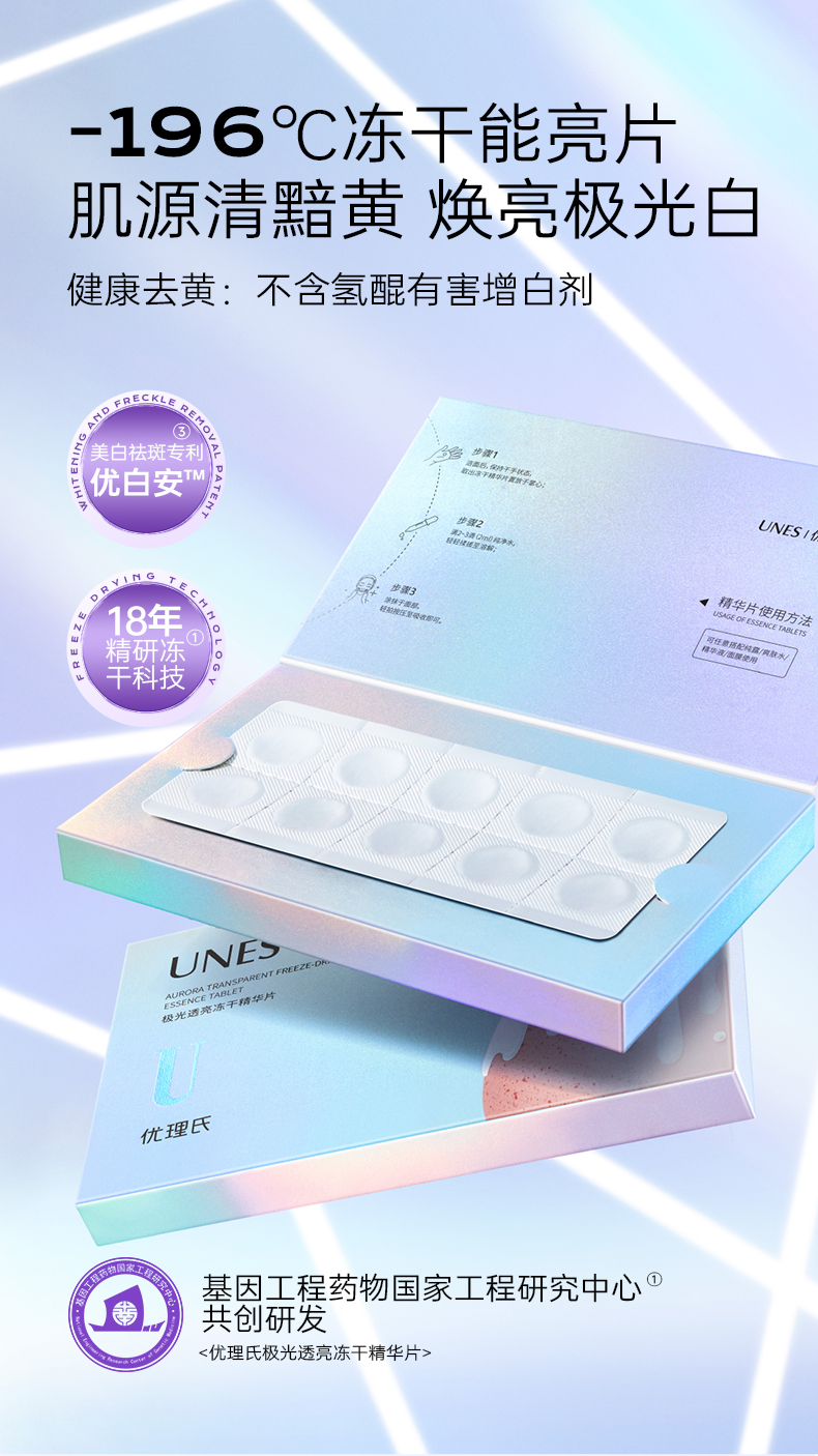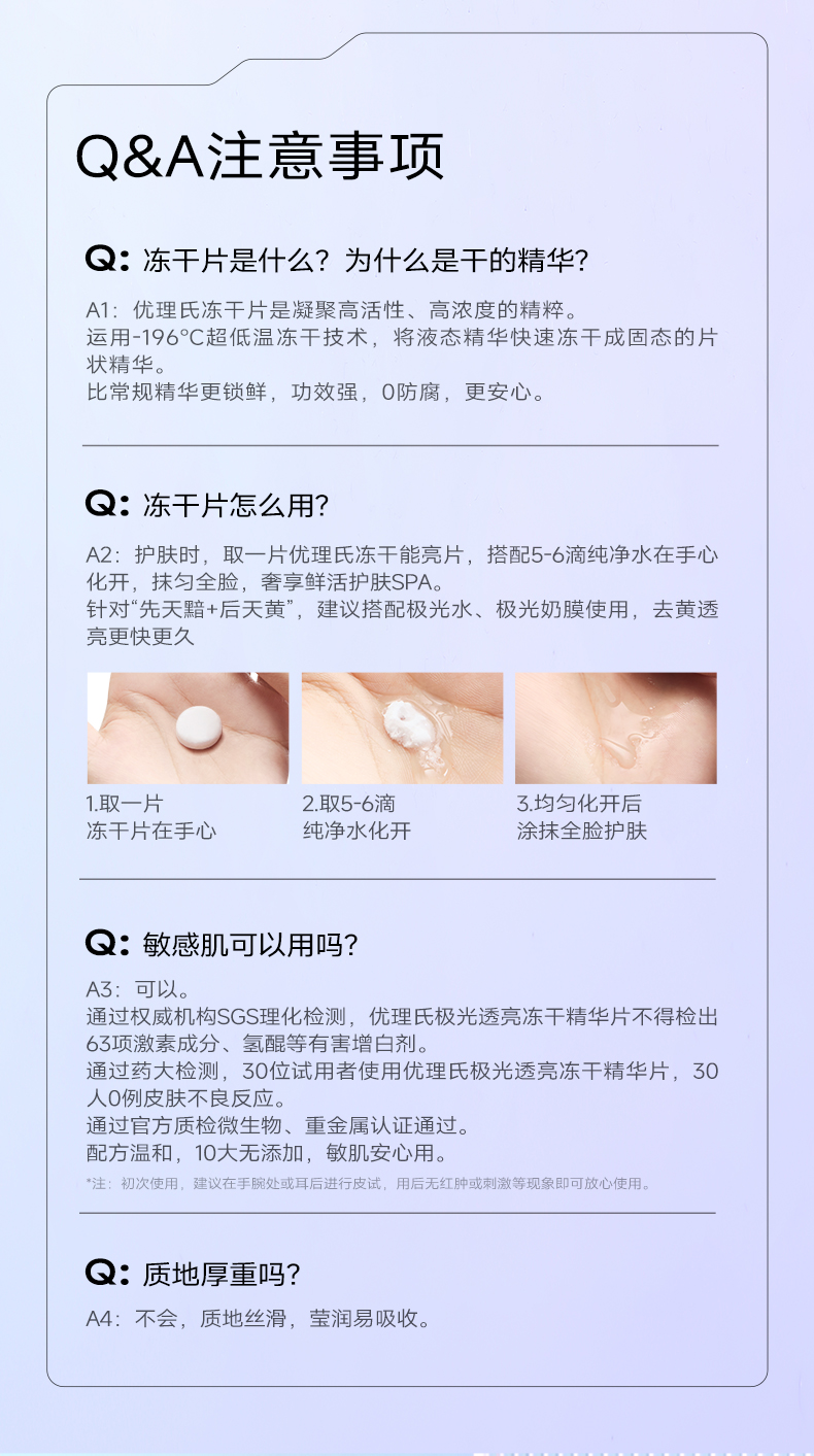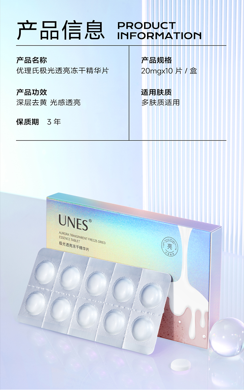 【便携美白仓】优理氏极光透亮冻干精华片 去黄焕亮祛斑褪黯光感透亮舒缓冻干片