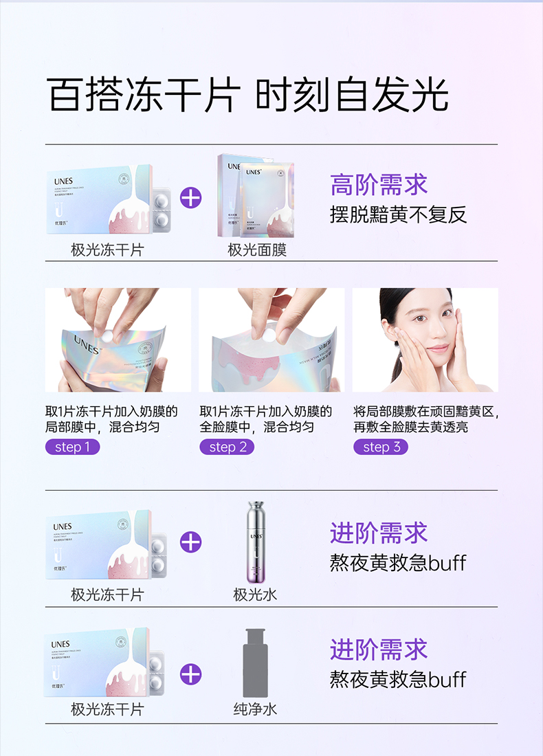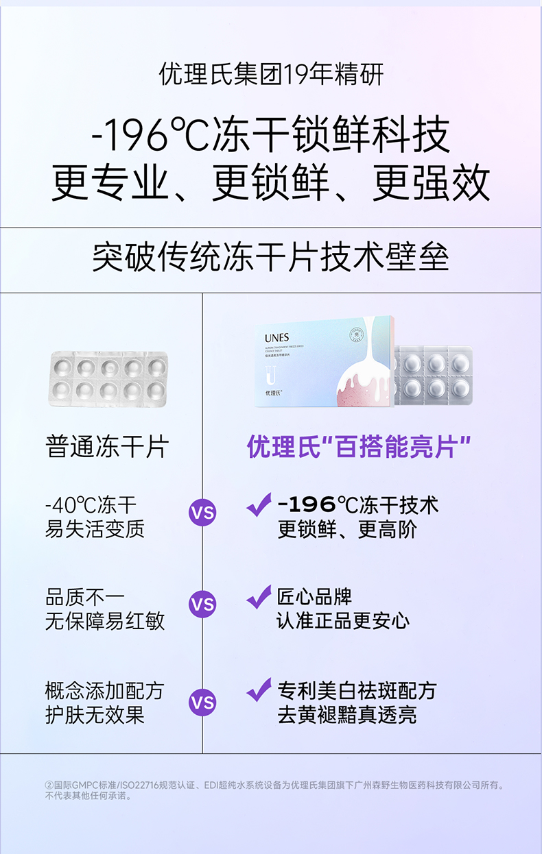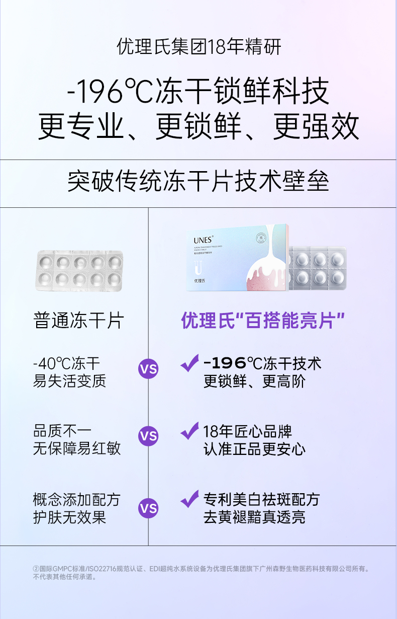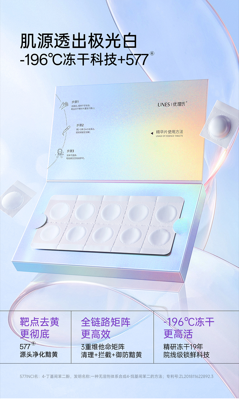 【便携美白仓】优理氏极光透亮冻干精华片 去黄焕亮祛斑褪黯光感透亮舒缓冻干片