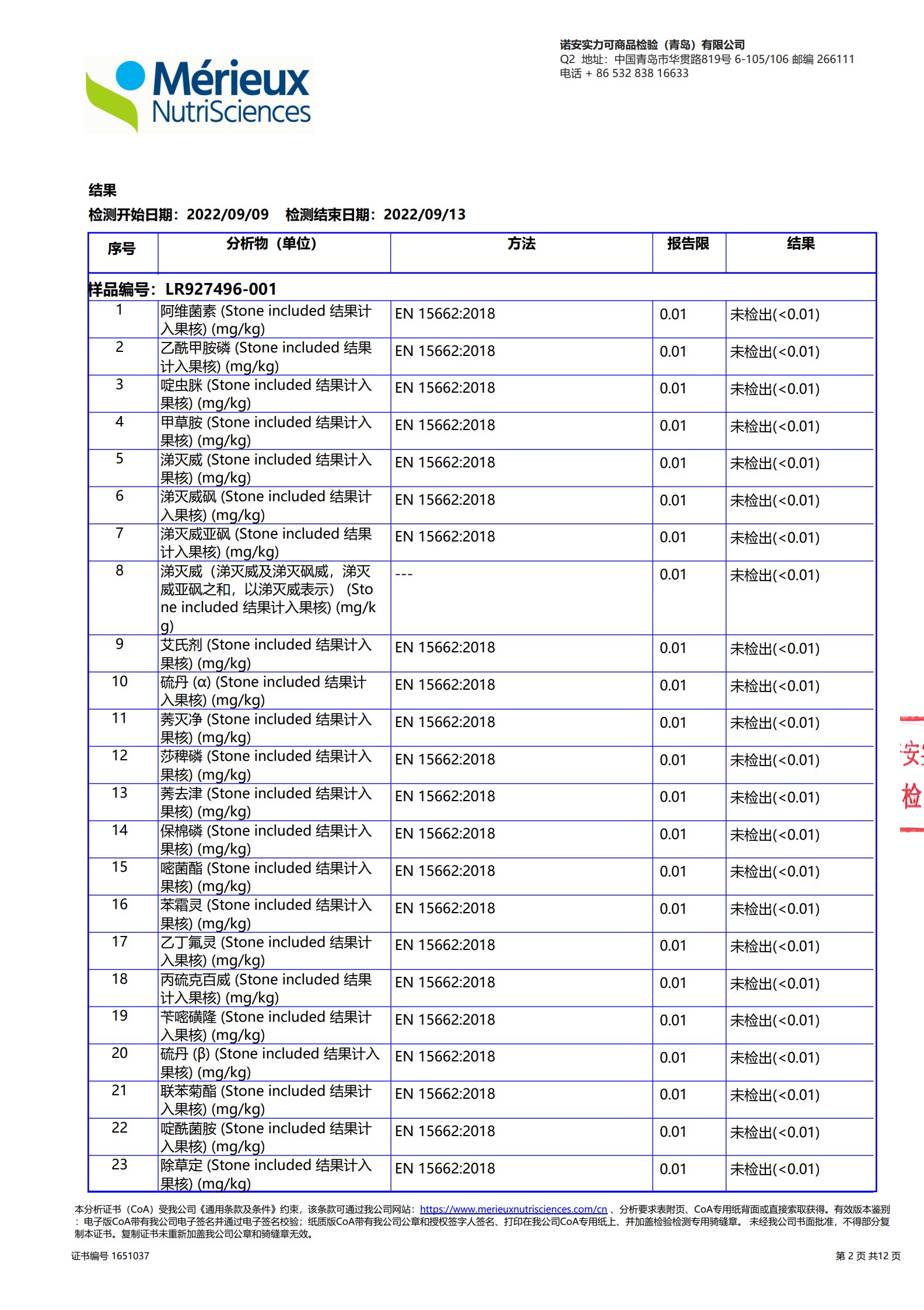 枣278项农残检测未检出