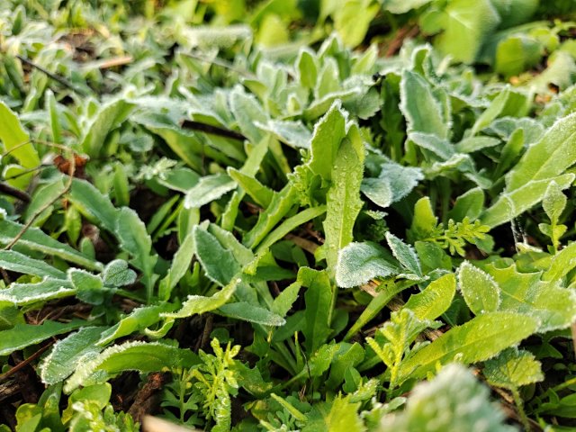 枣树下长了很多野生荠菜